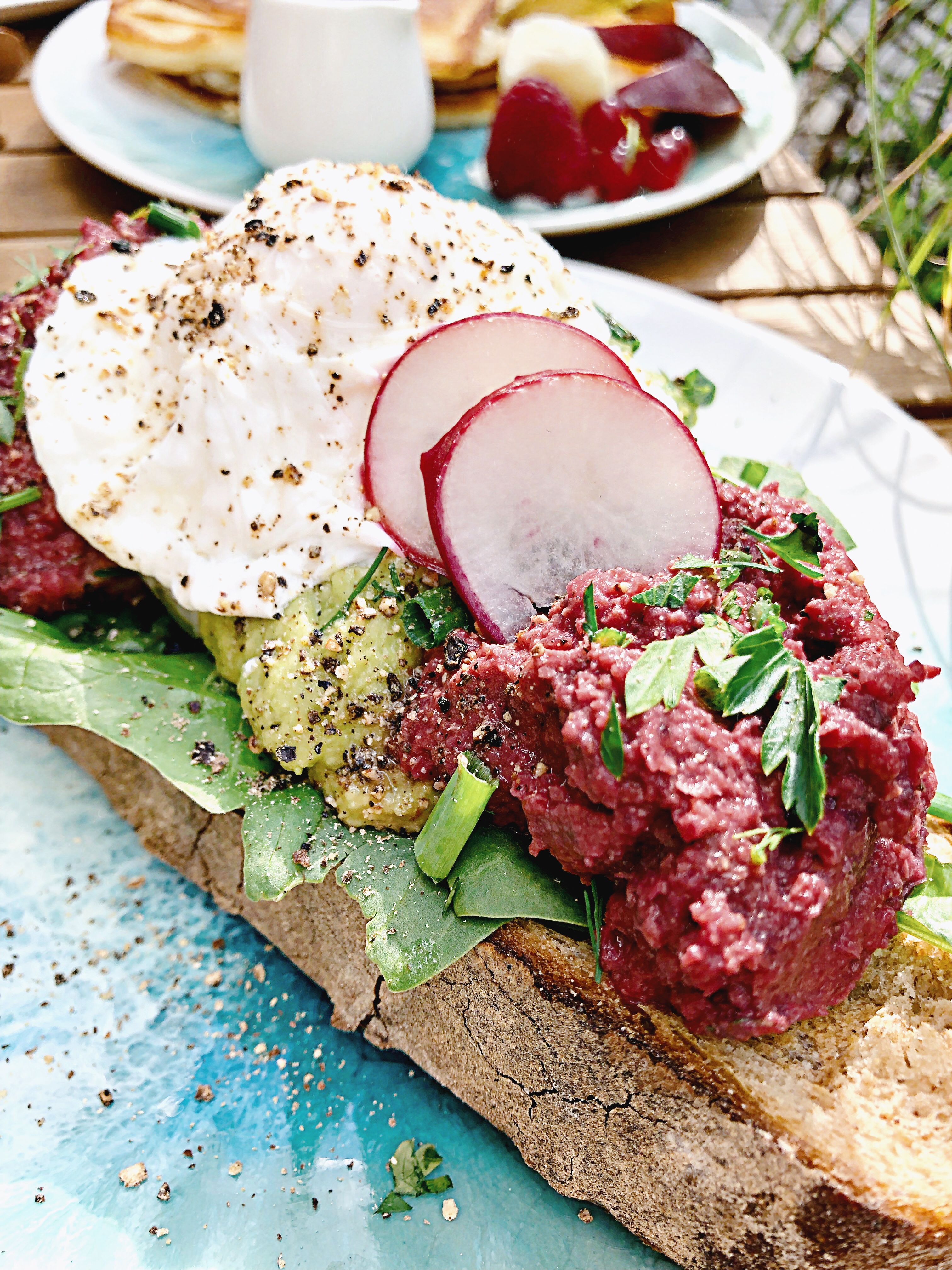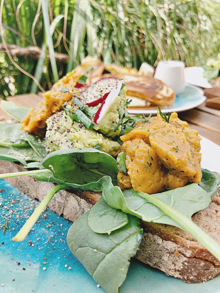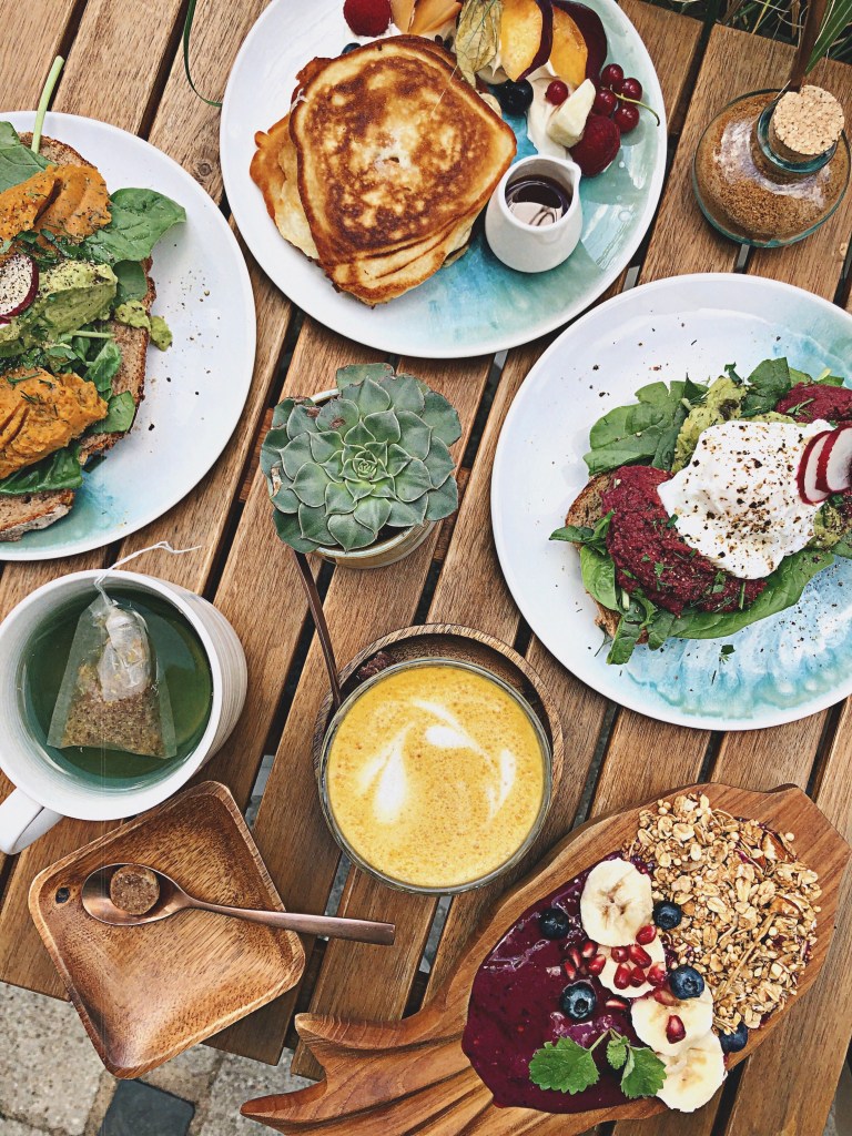 Leute, ihr müsst unbedingt die Pancakes im Herz & Bauch Café probieren! Die meisten Pancakes hauen mich ja weniger um, aber diese waren einfach der Knüller! Mich hat auch die Aufmachung der Pitaya Bowl in Form einer Ananas begeistert. Das Team ist sehr lieb und das Frühstück lohnt sich auf jeden Fall! Wir haben uns auch ein leckeres Brot gegönnt und ich kann es euch nur ans Herz legen. Ich bin im Moment auch in meiner Hummus Phase und feiere alles, was man mit Hummus bestellen kann 😉 Die goldene Milch ist auch ein Traum! Lasst mich wissen, wie ihr die Pancakes fandet!