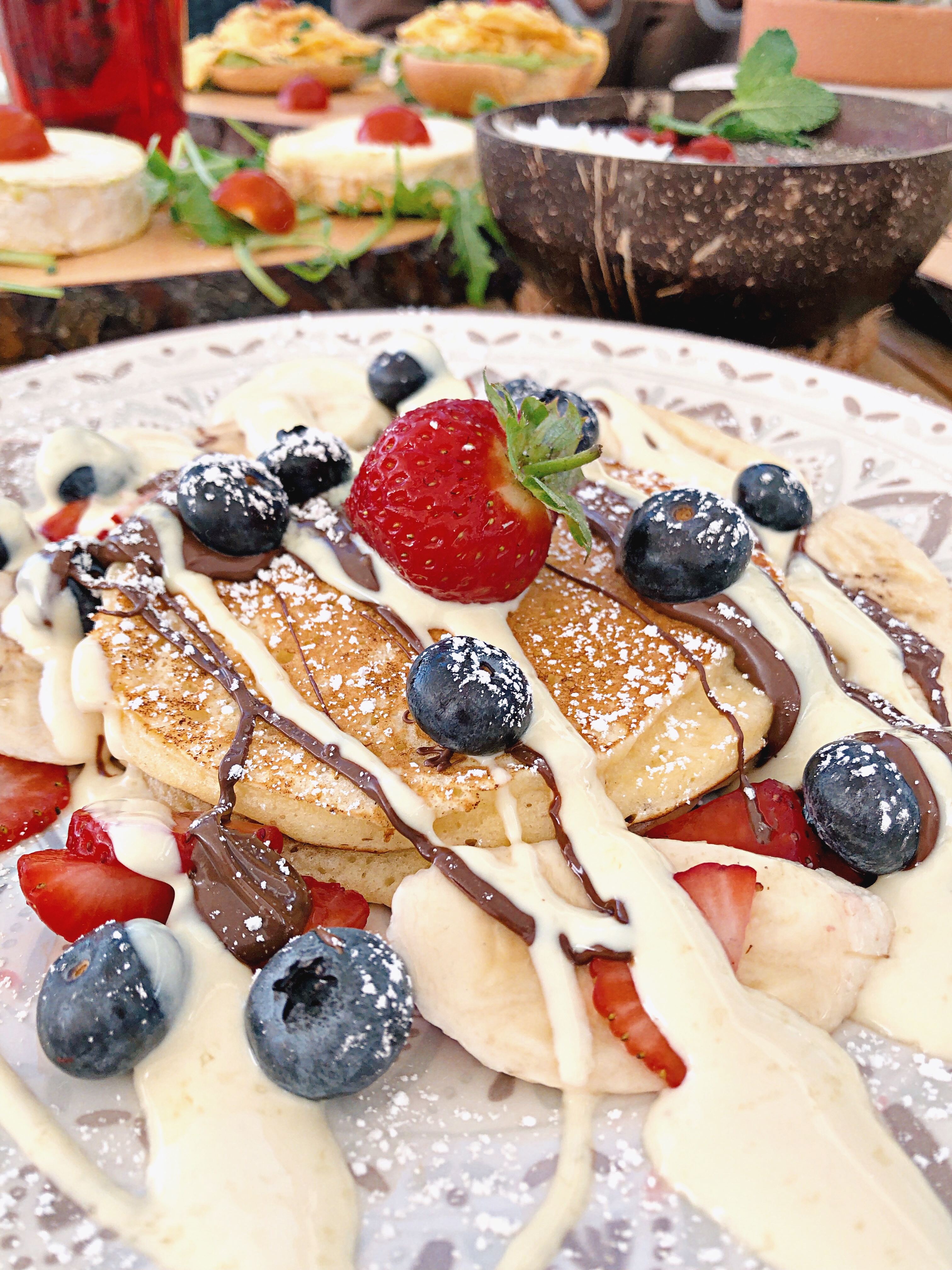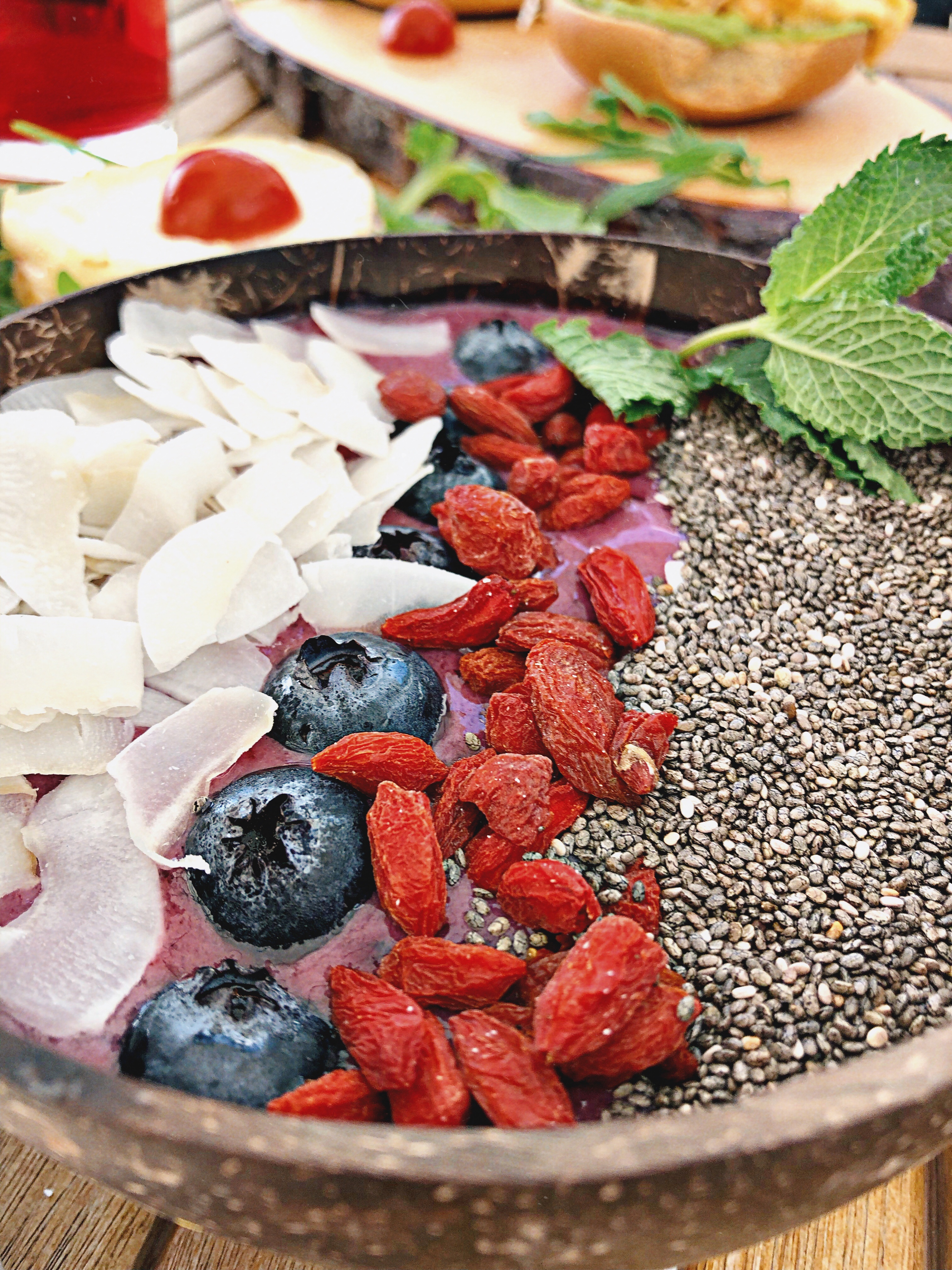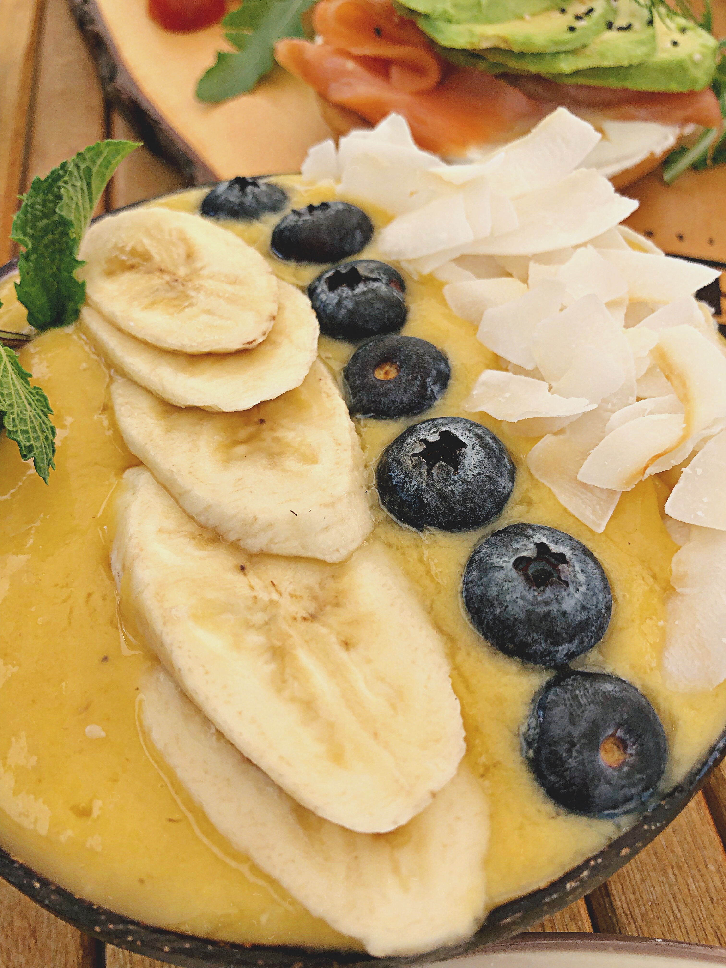 Da wir uns mal wieder nicht entscheiden konnten, haben wir kurzerhand die halbe Karte geordert und uns die Açaí Bowl, die Mango Smoothie Bowl, den Lachs und auch den Avocado-Rührei-Bagel, die Ziegenkäsetaler, die Blueberrypancakes und die Pancakes mit frischen Erdbeeren, Eis und Schokosauce gegönnt. Mein persönliches Highlight war tatsächlich der Avocado-Rührei-Bagel. Der Bagel war einfach super knusprig und ein kleiner Tipp: in Kombination mit dem Ziegenkäse ist er einfach unschlagbar 😉