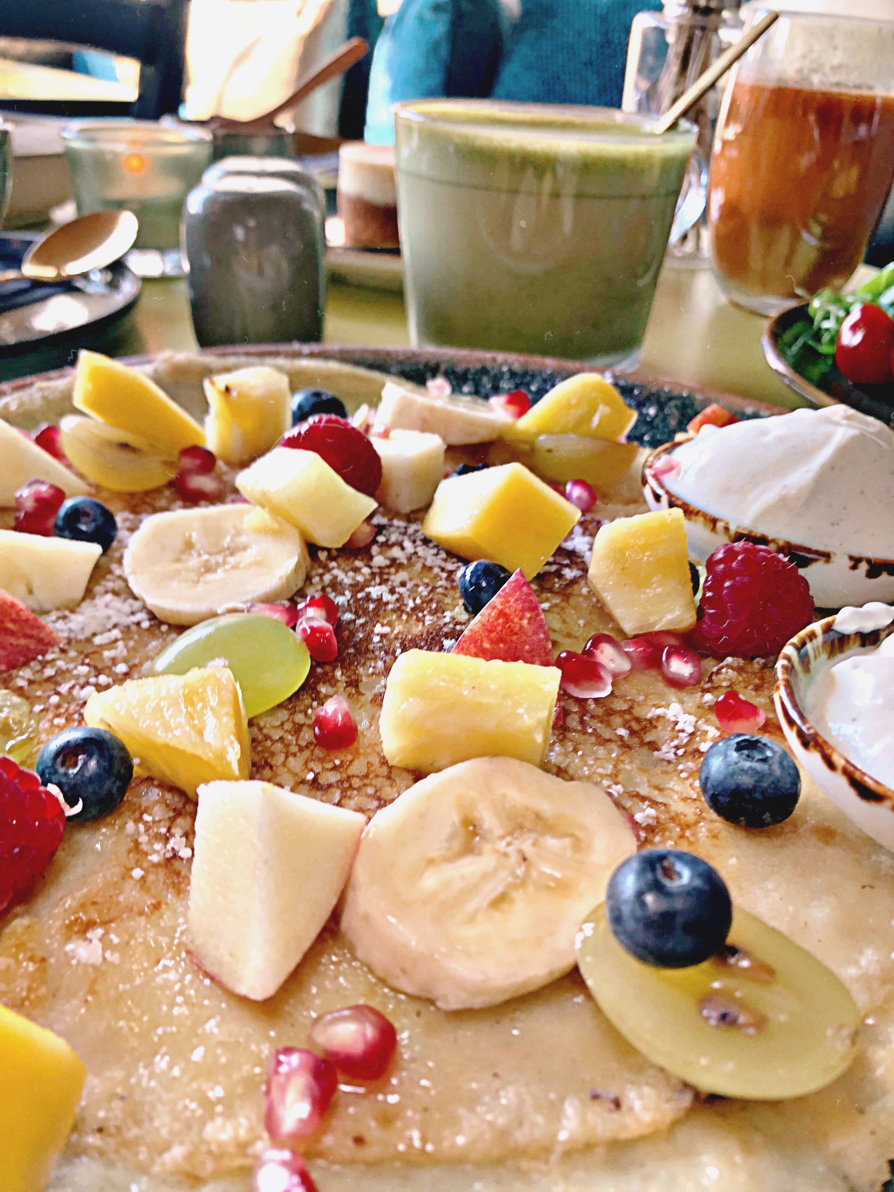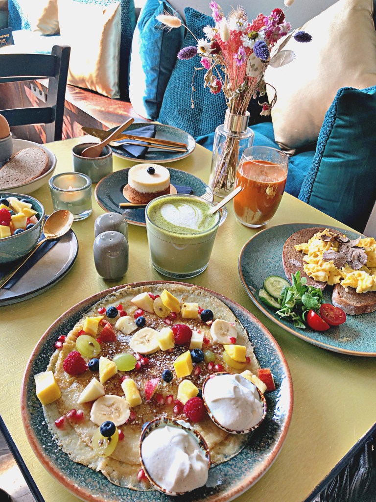 Auf der Karte finden sich neben persischen Leckereien eine Reihe wahnsinnig guter Frühstücksklassiker wie einer bunten Etagere mit Käse, Wurst, Avocado, Ei und vielem mehr oder auch sämtliche Eierspezialitäten wie Trüffelrührei bis hin zu Avocado-Hummus-Broten mit pochiertem Ei. Es gibt natürlich auch gesunde Bowls und frisch gepresste Säfte und nicht zu vergessen, Pfannkuchen auf jede leckere Art 😉 Für alle Naschkatzen hat die Kuchentheke etliche kleine Küchlein wie Cheesecake oder Schokocremetörtchen zu bieten.