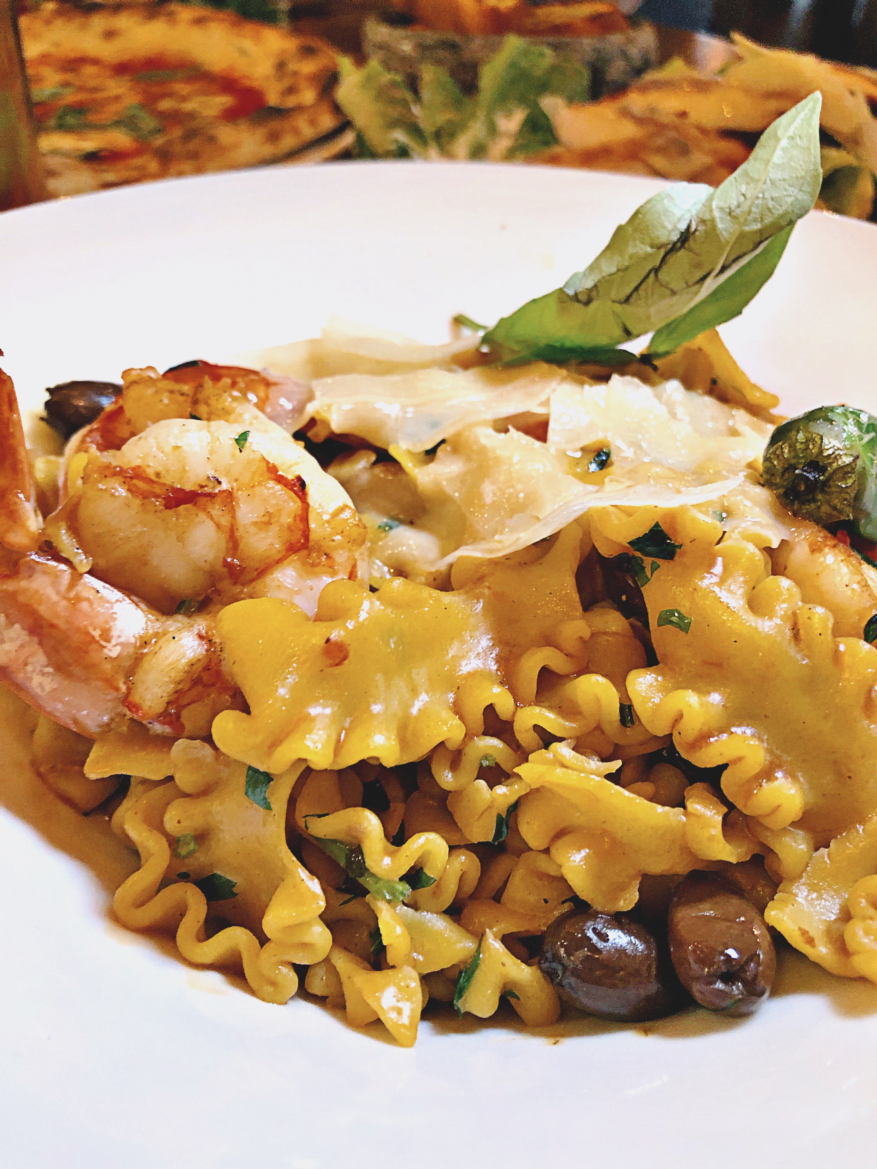 Bei den Vorspeisen haben wir uns für die Fischsuppe und einen kleinen Antipasti-Teller entschieden. Danach ging es direkt weiter mit einer Pizza Margherita, einem Cesar Salad und dem Pasta-Gericht „Malfaldine a la Lucacelli“ (mit Garnelen anstatt von Rinderfiletstreifen). Die Pasta hat mich besonders überzeugt und das, obwohl ich sonst immer Team Pizza bin. Das Lucacelli hat auch eine Reihe selbst gemachter Limonaden, die ich euch wärmstens empfehlen kann! Ich hatte eine mit Himbeeren und frischer Minze – sehr erfrischend! Selbstverständlich haben wir uns auch noch Desserts bestellt. Es gab hausgemachtes Tiramisù, Panna Cotta und ein warmes Schokoladen-Soufflé, das uns wirklich umgehauen hat!