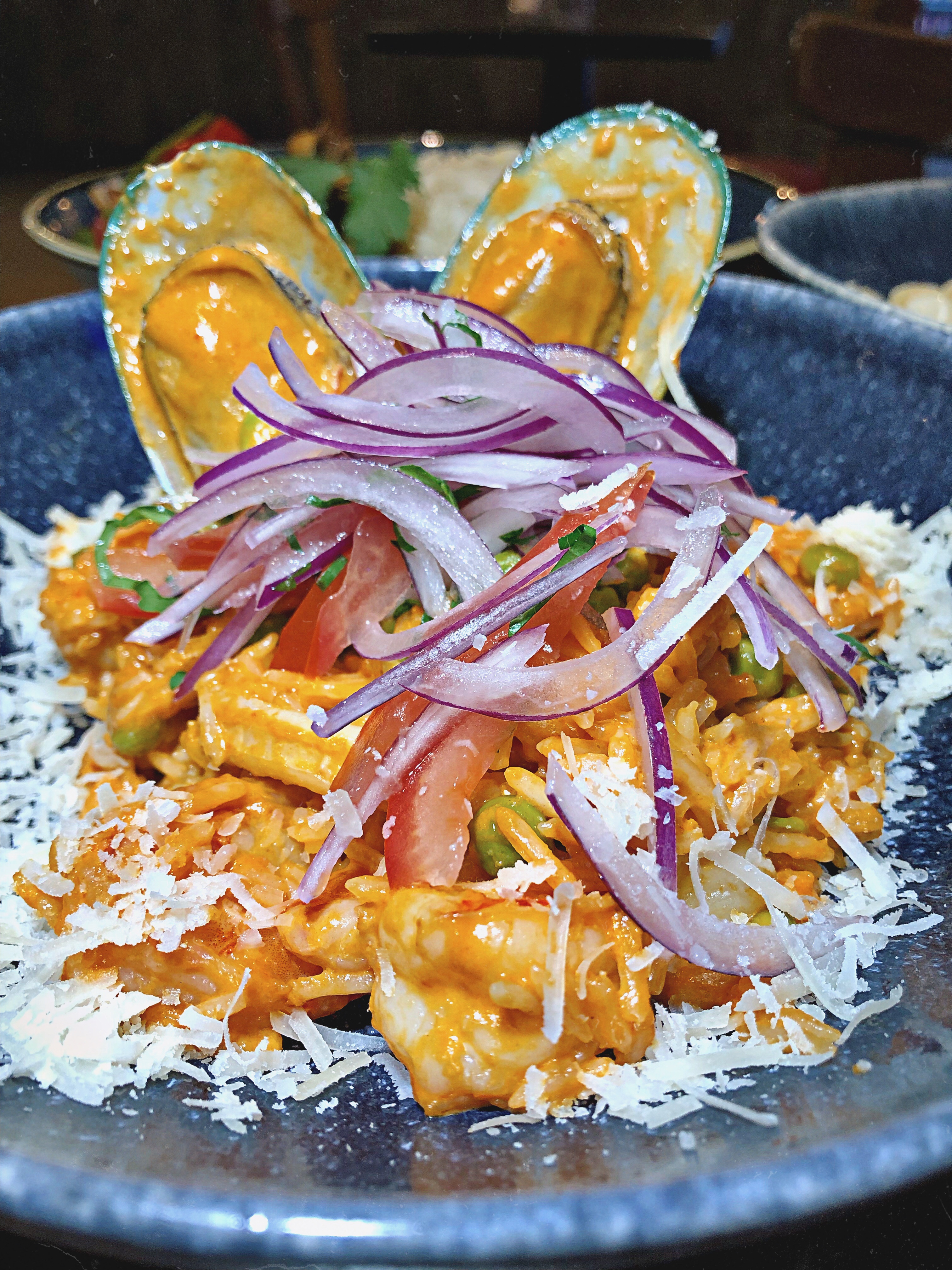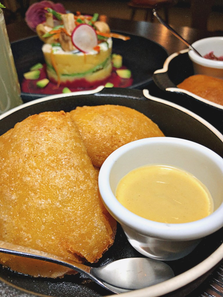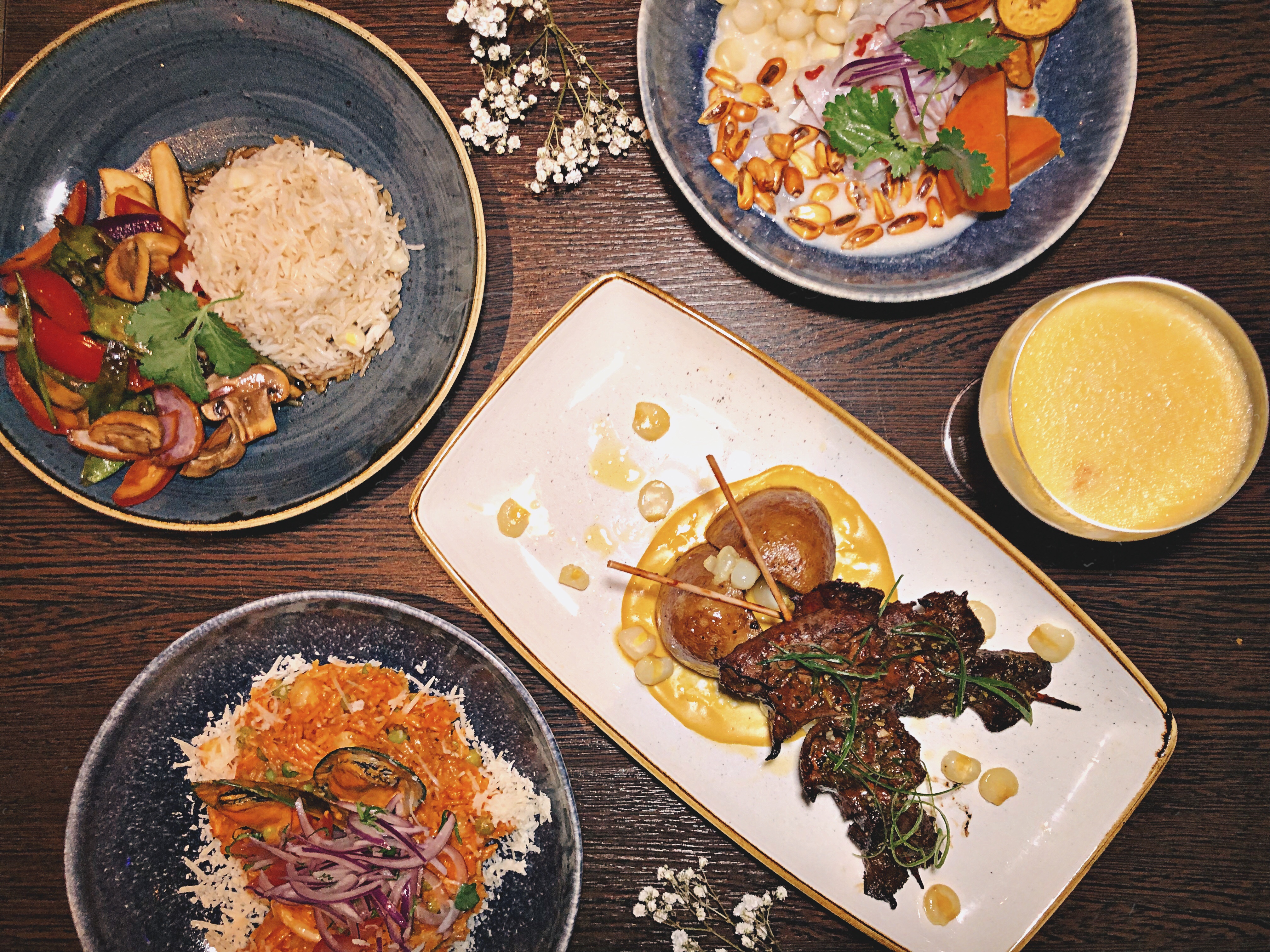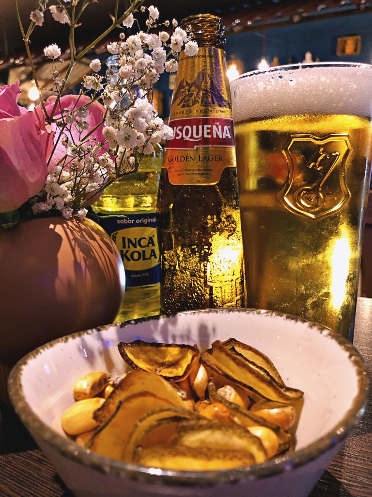 Begonnen haben wir den Abend mit leckeren Cocktails, einem Pisco Sour und Maracuya Sour. Da wir uns nicht entscheiden konnten, haben wir direkt vier verschiedene Vorspeisen bestellt. Die Yuquitas Bravas (frittierter Maniok), Causa te quiero verde (Kartoffelpüree gewürzt mit gelben Chilli und Limettensaft, gefüllt mit Gemüse, Avocado und Wachtelei), Empanadas de Carne und Empanadas Veggie (Teigtaschen, gefüllt mit Karotte und Ananas). Als Hauptgerichte hatten wir Ceviche Mi Barrio (mit Limettensaft, Salz und Chilli gewürzte Wolfbarschstücke mit Süßkartoffeln, Andenmais und gebratenem Tintenfisch), Anticuchos con Papa a la Huancaina (gegrilltes Rinderherz) und Arroz con Mariscos (Meeresfrüchte mit Gemüse und gekochtem Reis). Wir haben auch ein peruanisches Bier und eine Chicha Morada (Limonade aus lila Andenmais) genossen und am Ende noch eine Limonade con mentiea probiert. Selbstverständlich gab es auch noch einen süßen Abschluss. Die Crema volteada (Milch-Vanillecreme mit Karamellsauce) und die Tortica de 3 leeches (Milchkuchen). Der Abend war wirklich ein tolles Erlebnis und ich kann euch die peruanisch-lateinamerikanische Küche nur ans Herz legen.