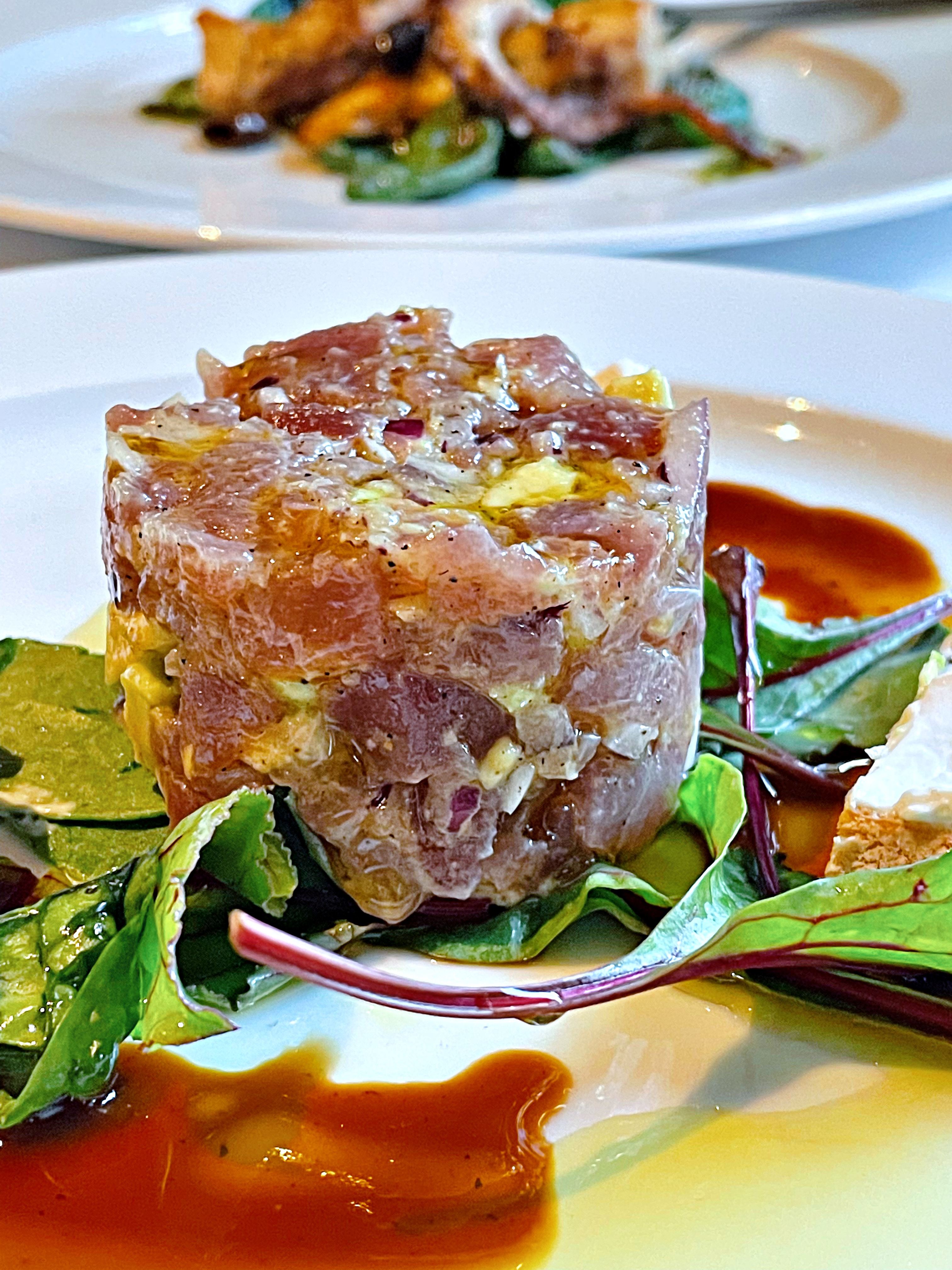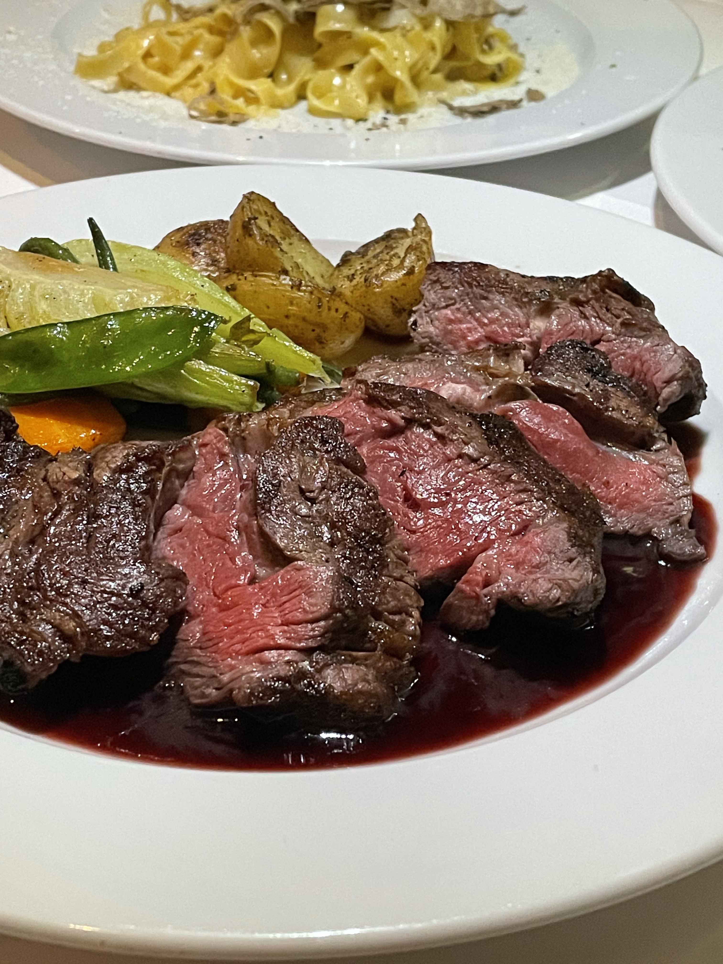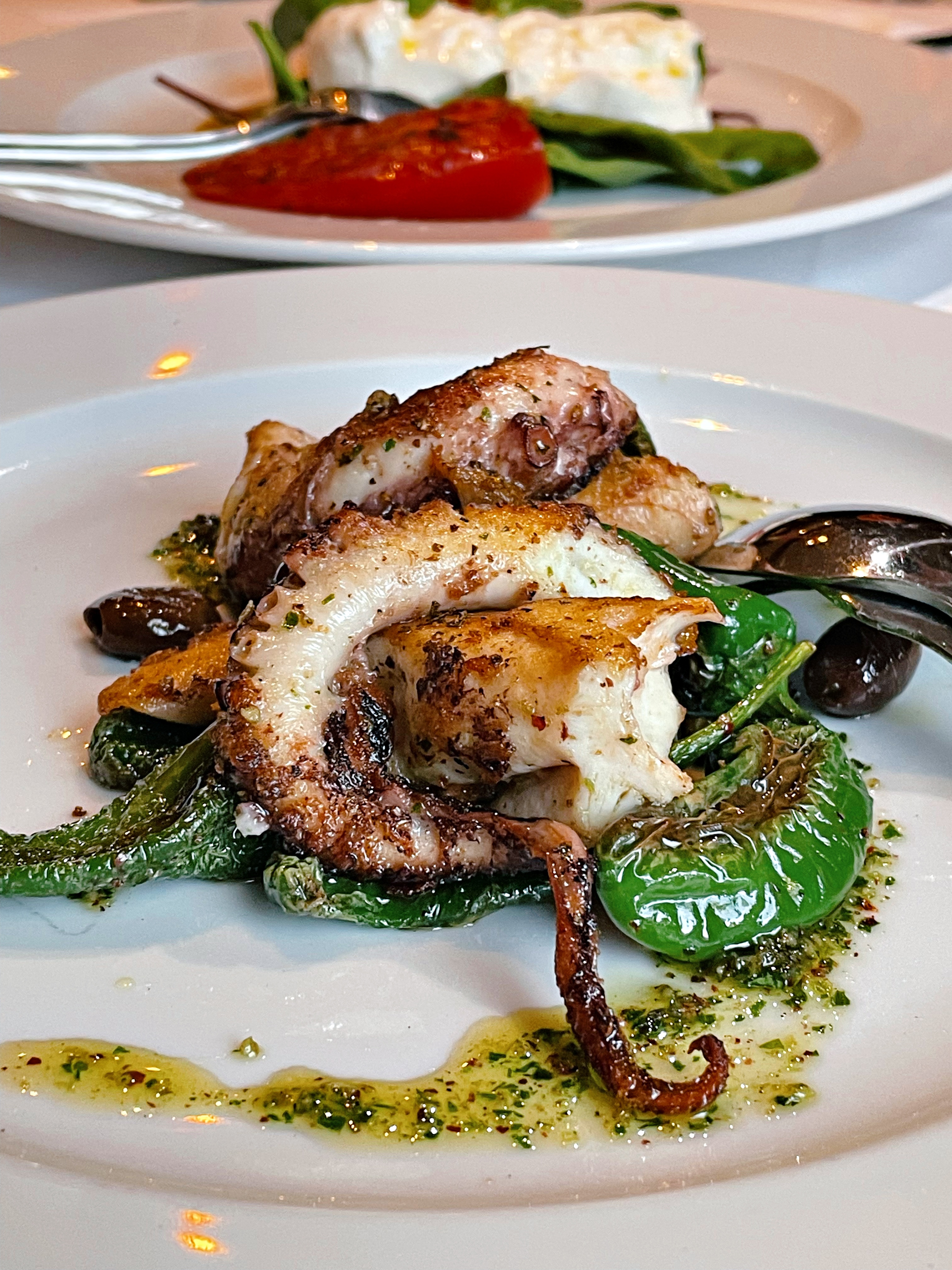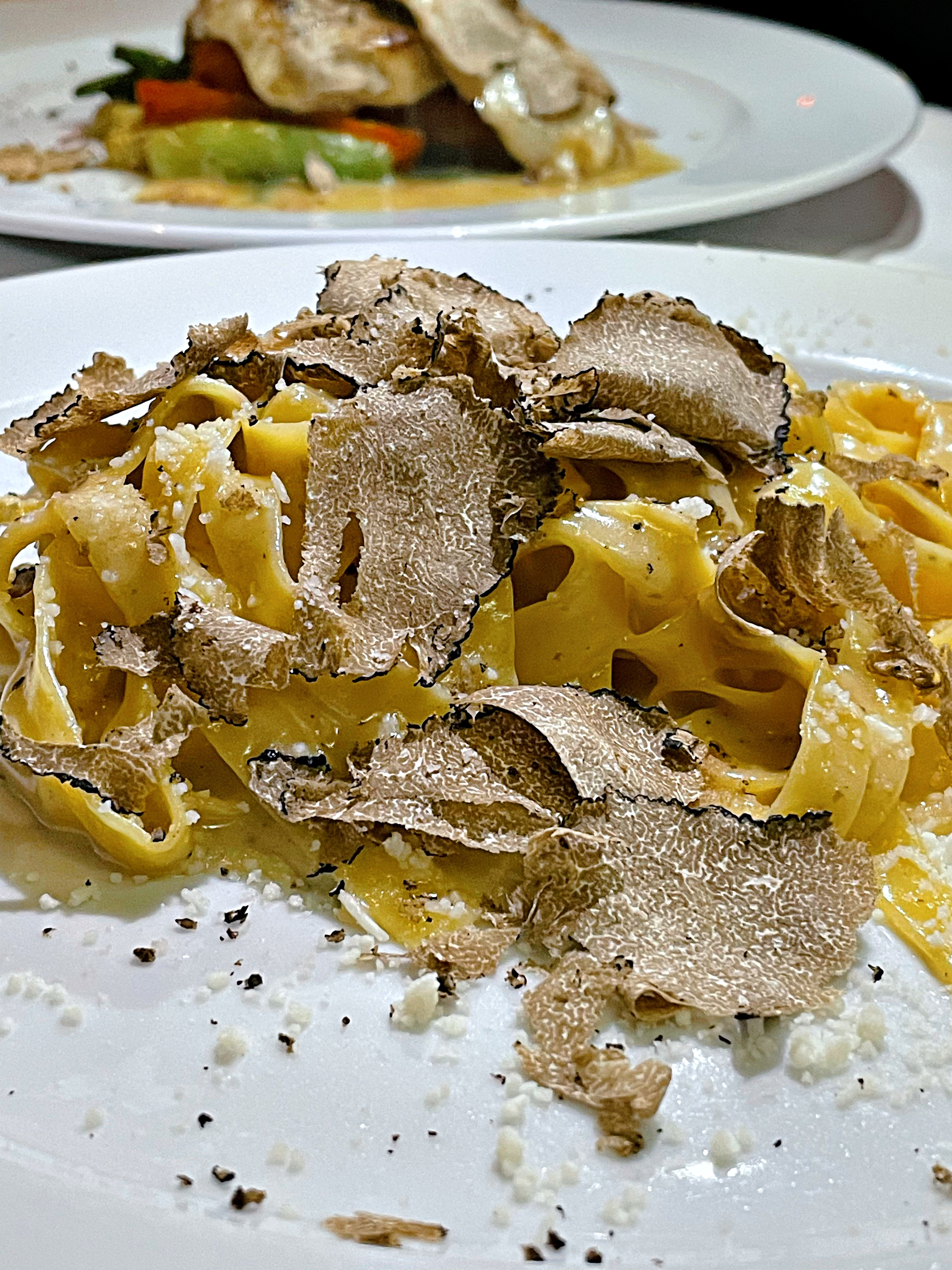 Wir haben den Abend mit einem Aperol Spritz und Hugo gestartet und uns die Burrata mit San Marzano Tomaten, das Thunfisch Tartar mit Avocado und den gebratenen Pulpo mit Pimentos aus den Tagesempfehlungen bestellt. Dann ging es weiter mit einem super leckeren Steinbuttfilet mit Trüffel, Entrecôte Tagliata auf Gemüse und Tagliatelle mit Trüffel. Selbstverständlich haben wir uns auch noch etwas Süßes zu Abschluss gegönnt und zwar ein hausgemachtes Tiramisù, Panna Cotta und Mascarpone mit Waldfrüchten. Besonders empfehlen können wir den Pulpo, den Steinbutt und die Pasta, die die so ziemlich beste Trüffelpasta Hamburgs ist und das Panna Cotta, was eine Zitrusnote hat. Ein wahrer Traum!