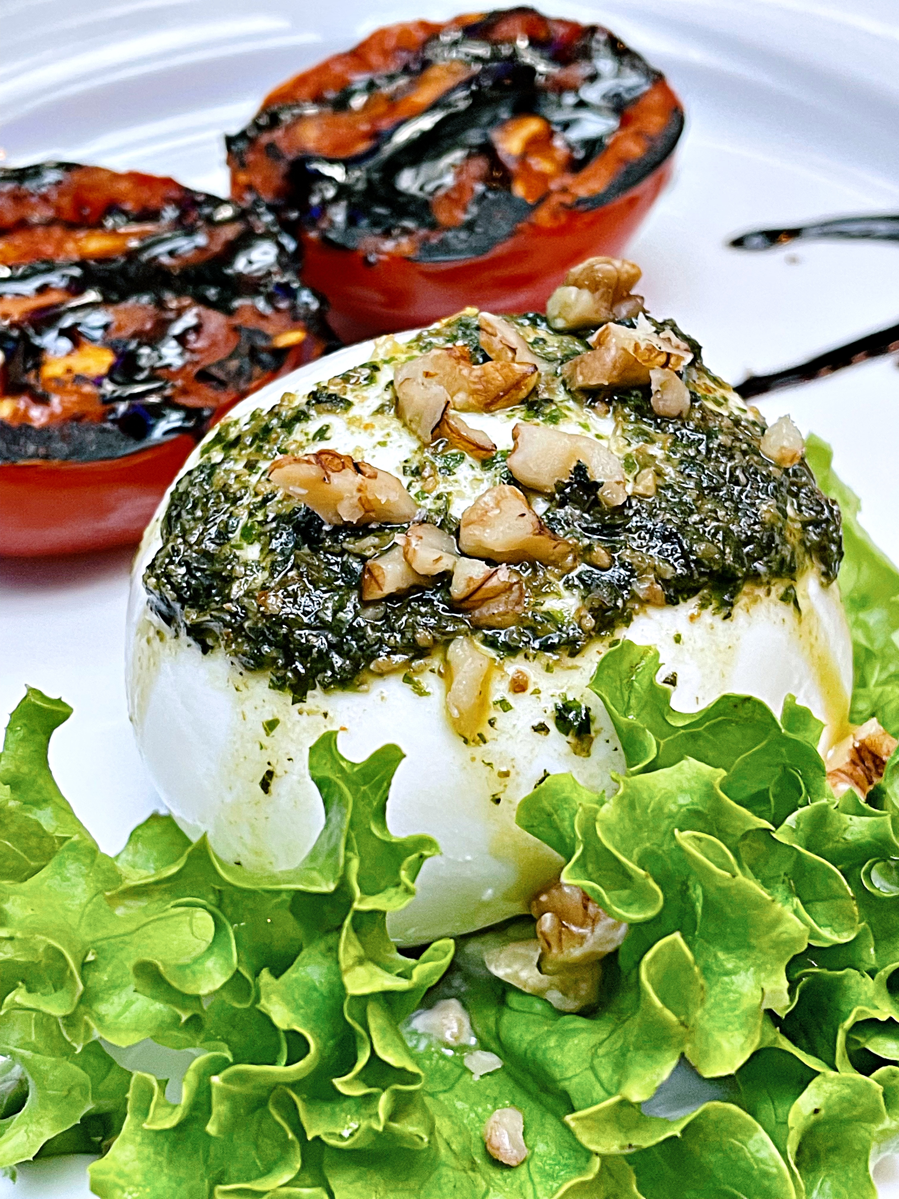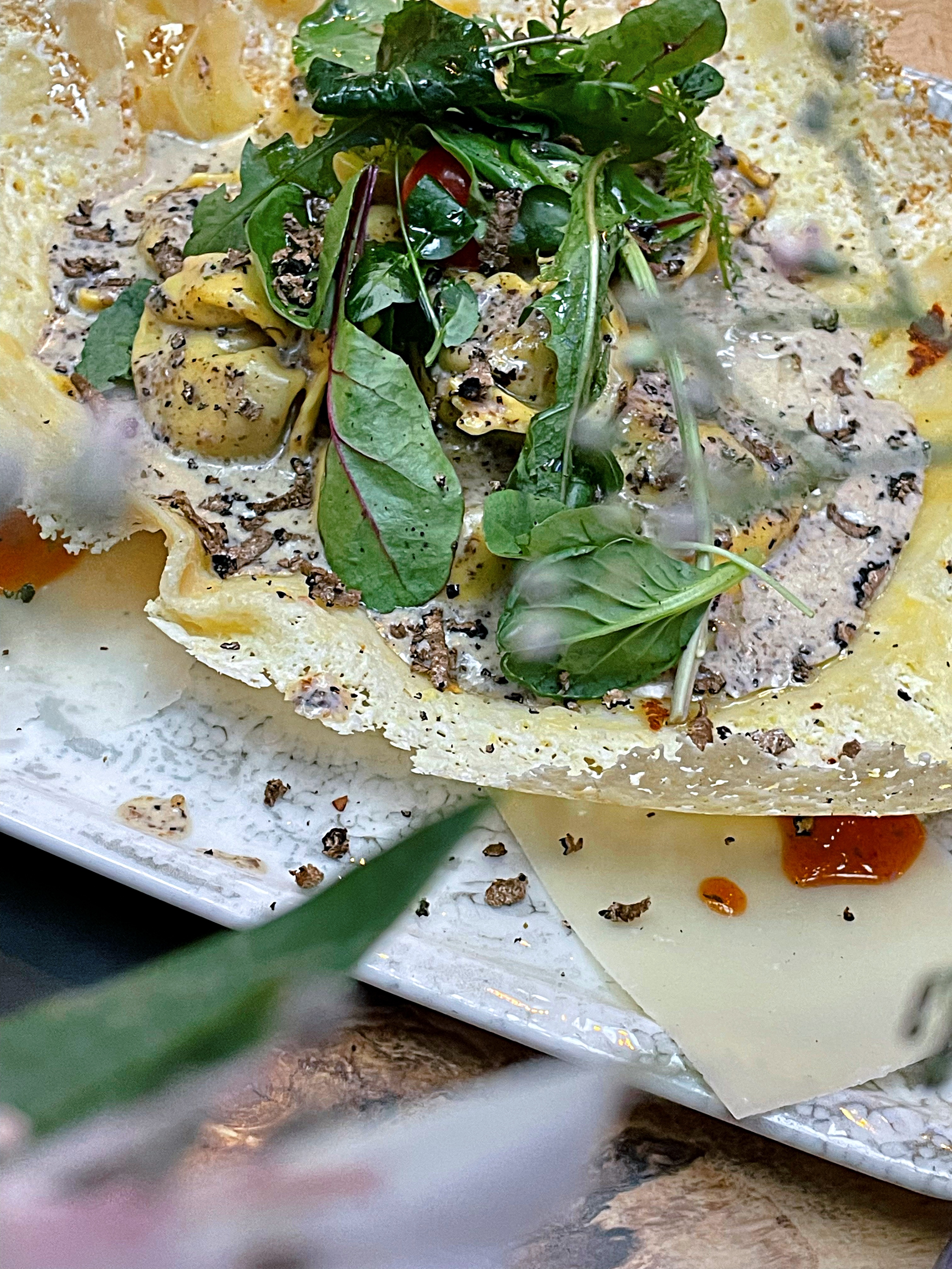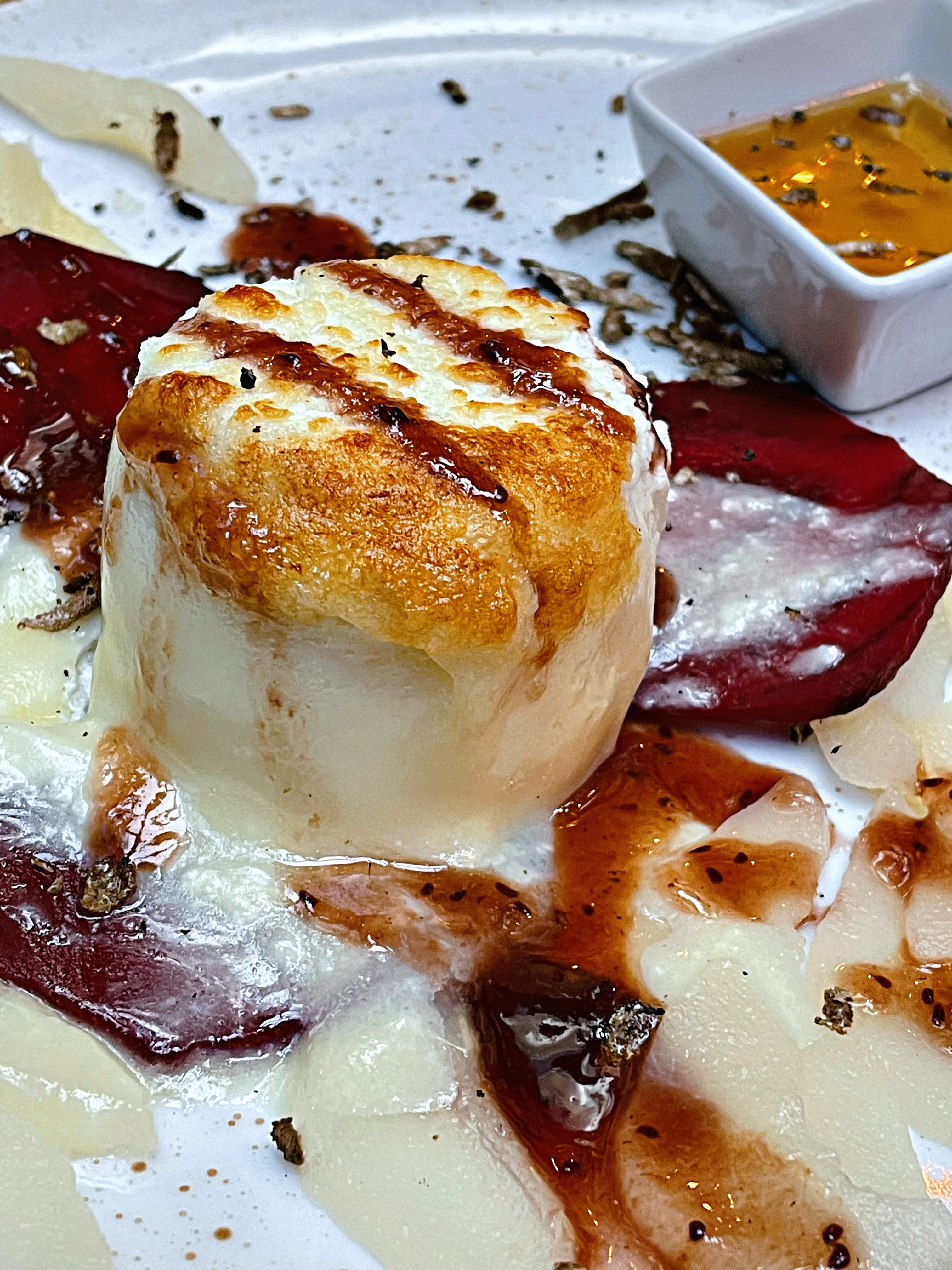 Wir haben den Abend mit einem “Amaretto Sour“ und einem „Old Fashion“ begonnen. Bei den Vorspeisen wurde uns die italienische Burrata mit gegrillten Tomaten und Pesto und die „süße Ziege“, gebackener Ziegenkäse auf Birnen-Carpaccio mit Trüffelhonig empfohlen. Dazu wurde frisches Brot mit einem Paprika Dipp gereicht. Dann ging es weiter mit gefüllten Steinpilzravioli mit Trüffelcreme in einem Parmesan-Schälchen und dem Lammfilet auf Trüffelcreme. Zum Abschluss haben wir uns noch eine Crème Brûlée und einen Espresso Martini gegönnt. Besonders empfehlen können wir den Ziegenkäse und den Amaretto Sour.