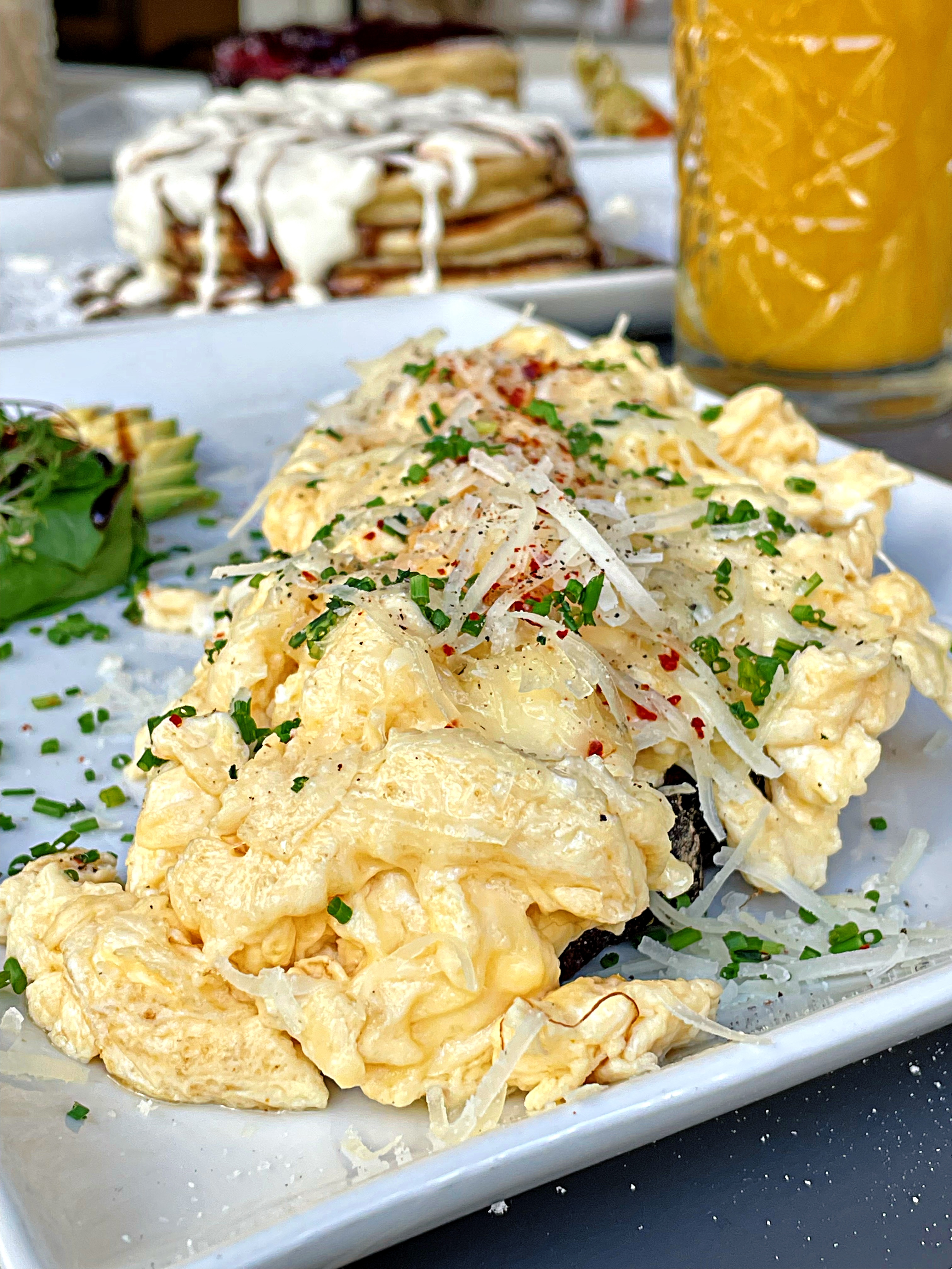 Uns wurden die “Blueberry Pancakes” mit hausgemachtem Blaubeer-Syrup empfohlen und dazu haben wir noch die „Cinna Stack Pancakes“ mit Zimtfüllung, Ahornsirup und Frosting, einen „Honey Turkey Bagel“ und “Pecorino Cheese Scrambled Eggs” aus drei Bioeiern auf Sauerteigbrot bestellt. Außerdem hatten wir natürlich den besonderen schwedischen Kaffee, der im Vergleich zum deutschen weniger sauer und dunkler ist. Dazu gab es noch frisch gepresste Säfte mit Orangensaft und Ingwer. Wir können tatsächlich alles empfehlen und werden auf jeden Fall ab sofort häufiger in den Stockholm Espresso Club gehen!