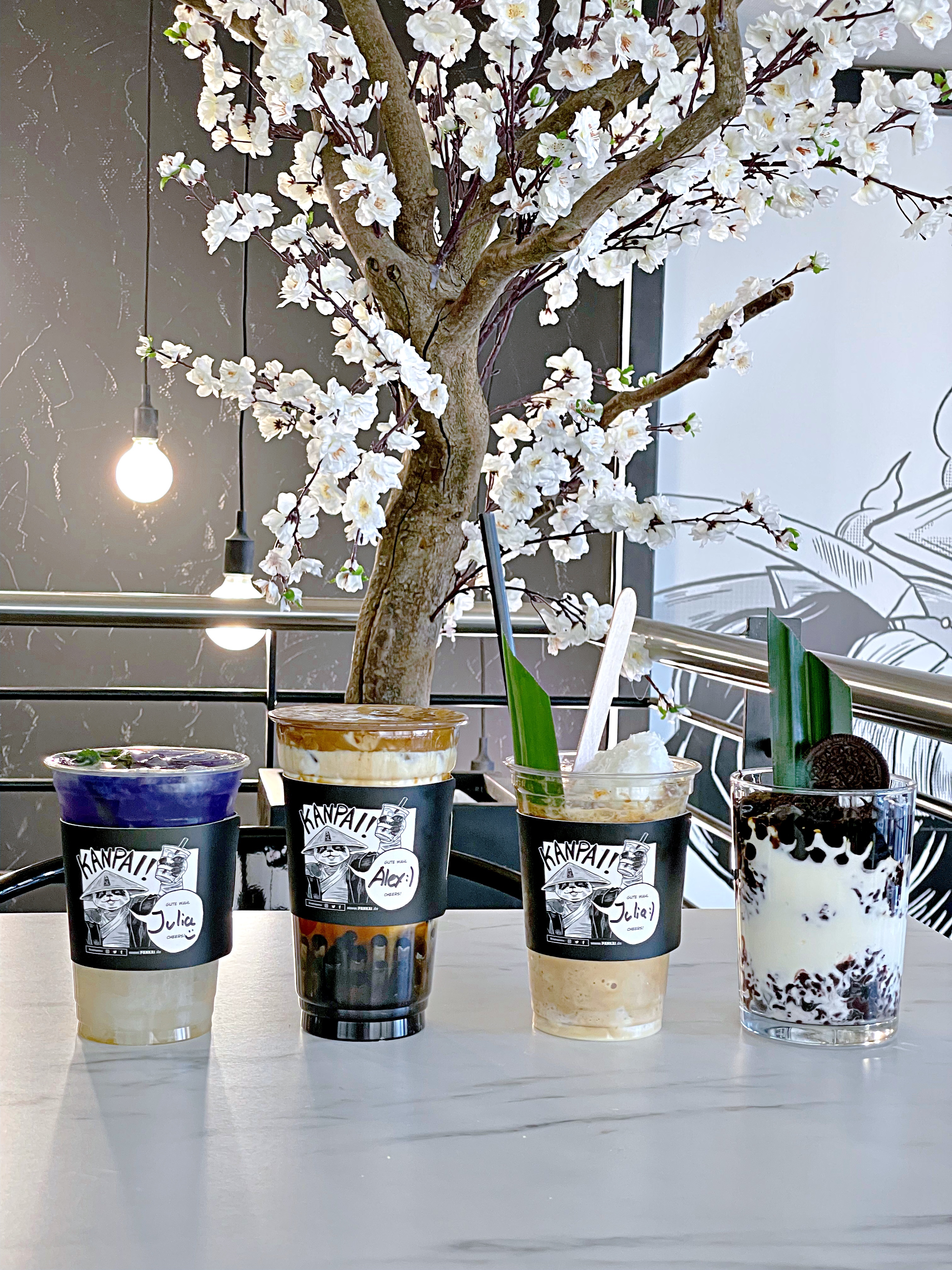 Die Location erstreckt sich über zwei Etagen und ist traumhaft dekoriert. Das Pankai hat sogar einen eigenen Manga an der Wand und auf seinen Karten, den ihr euch unbedingt angucken solltet. Wir haben uns einmal durch die ganze Karte probiert und können vor allem den “Oreo Sticky Rice” (schwarzer Sticky Rice mit Joghurt, Brown Sugar Tapioca Pearls und Oreo Crumbles), den “Dalgona Coffee Brown Sugar” und “Inazuma Sky” empfehlen. Es lohnt sich allerdings auch, den vietnamesischen “Egg Coffee” zu probieren – der ist einfach wunderbar cremig!