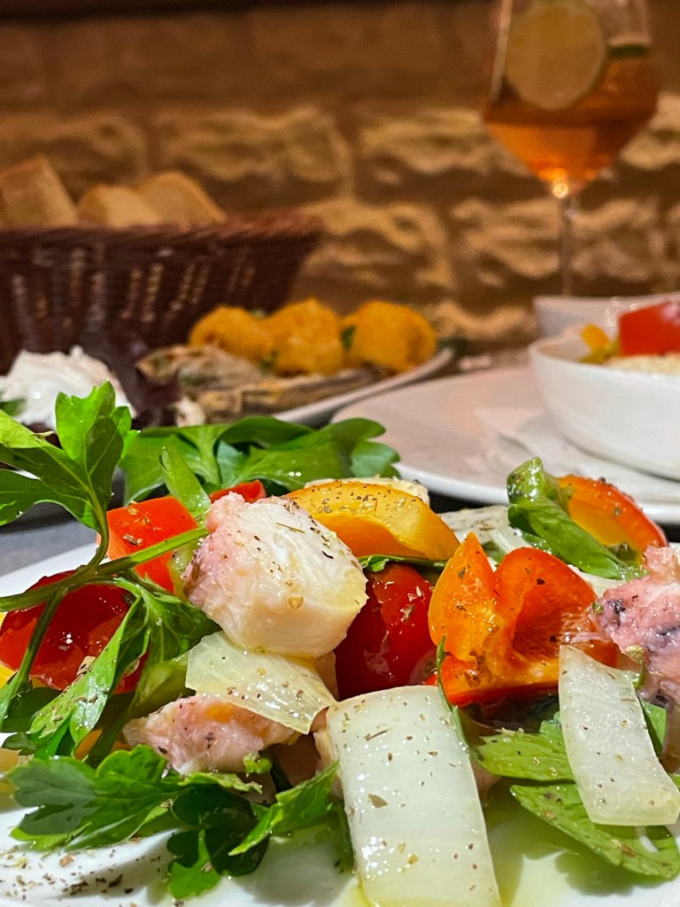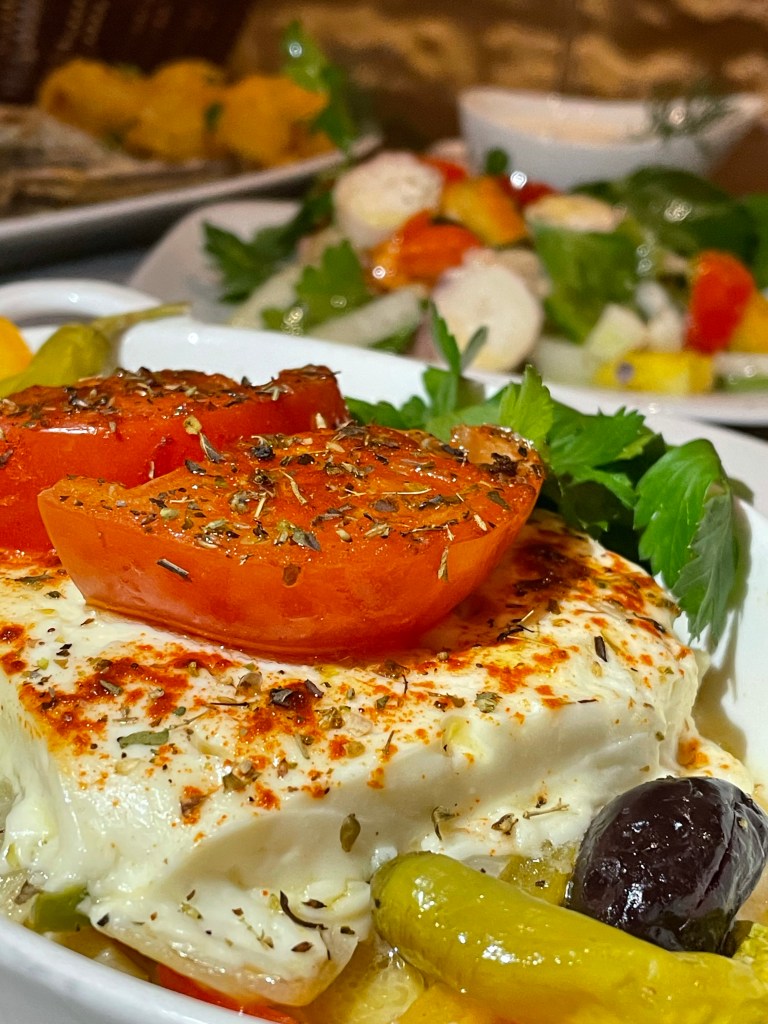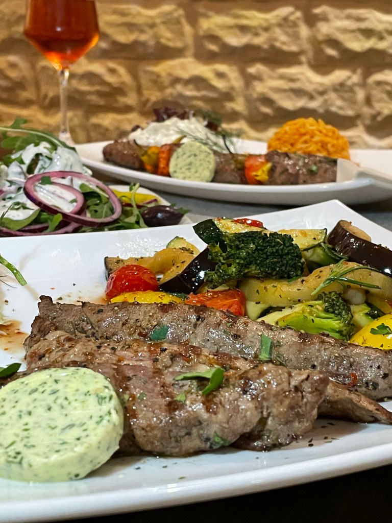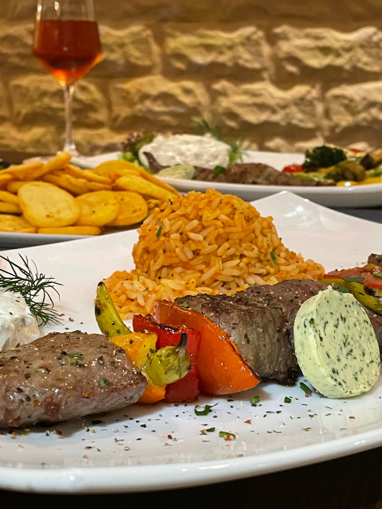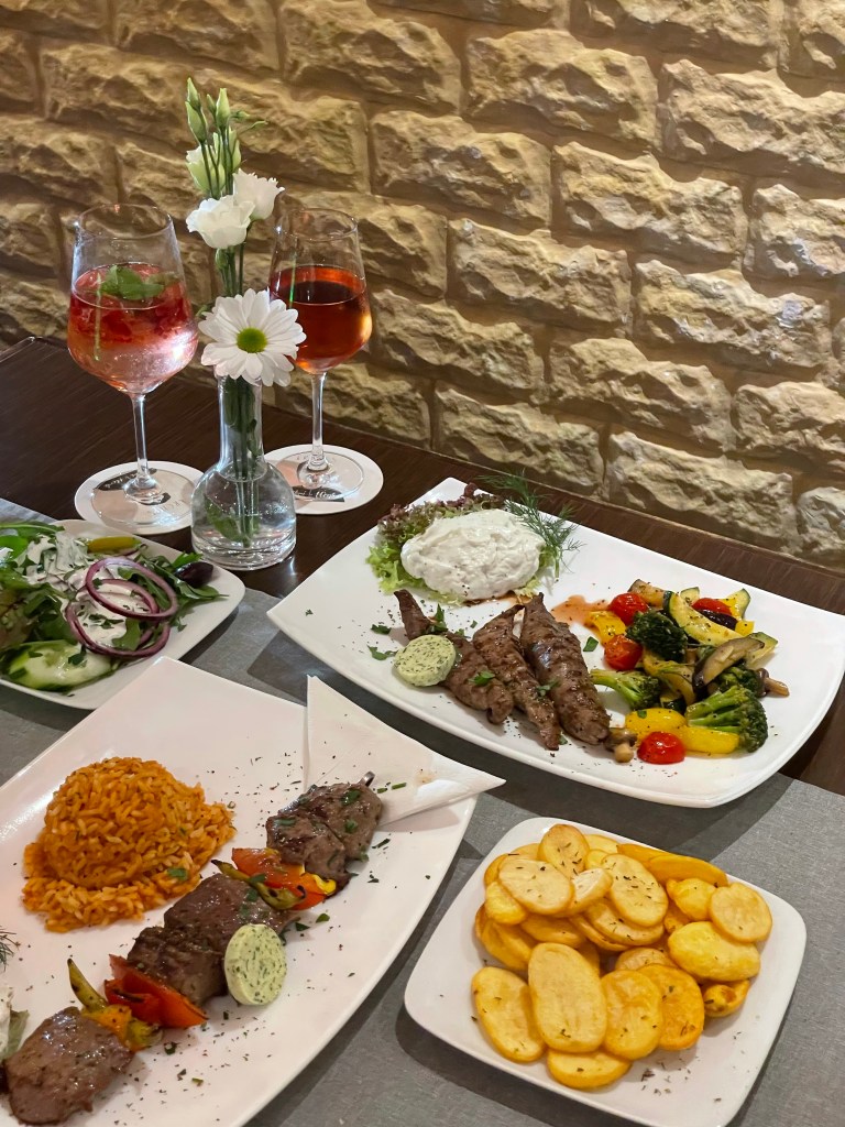 Wir haben den Abend mit einem leckeren Aperitif begonnen und uns einen bunten Mix an Vorspeisen bestellt. Besonders begeistert waren wir vom Oktopussalat, der wirklich unfassbar zart und sehr gut gewürzt war. Auch die selbst panierten Calamari und die hauseigenen Cremes des Meze Tellers haben es uns angetan. Beim Hauptgang haben wir uns beide für Lamm entschieden – das Lammfilet vom Grill und Lamm Souvlaki. Die Beilagen kann man bei allen Gerichten selbst wählen. Ihr solltet auf jeden Fall in die Taverna Kronos gehen und euch selbst von der Qualität des Essens überzeugen.