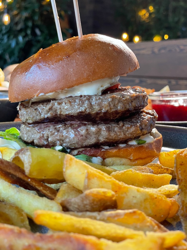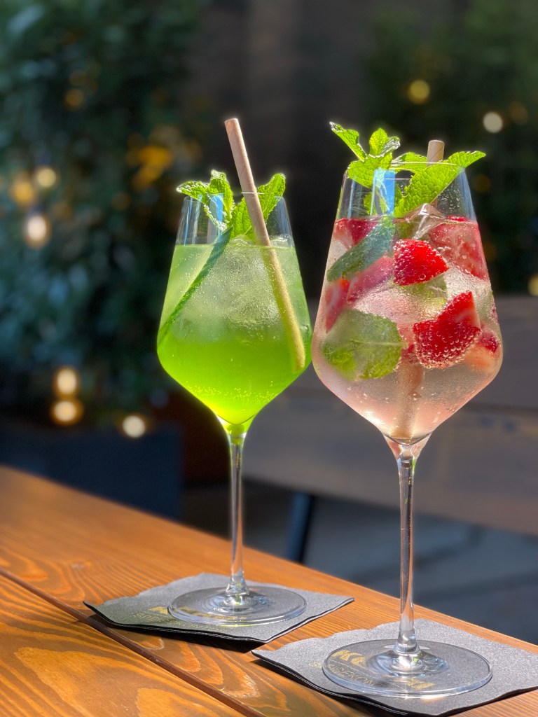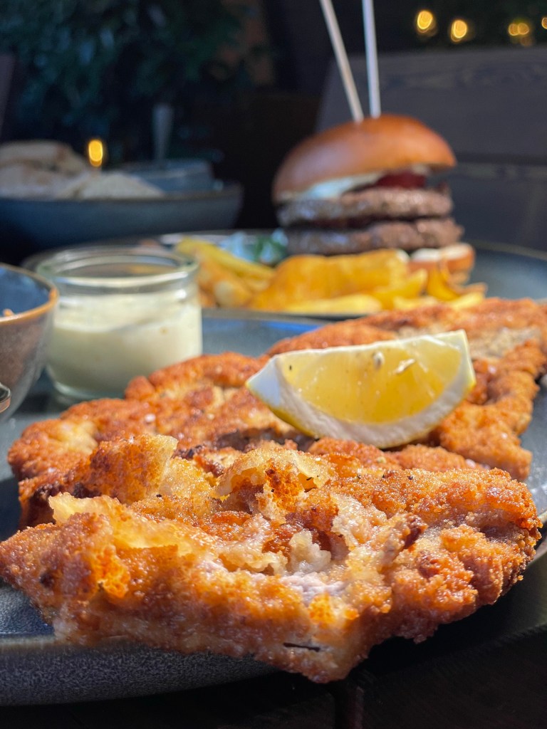 Wir haben uns zunächst, passend zur sommerlichen Stimmung, zwei besonders empfehlenswerte Aperitife, den Waldmeister Spritz und den Rhubytizer, bestellt. Bezüglich des Essens haben wir uns beraten lassen und uns schlussendlich für den Römer Burger und das Wiener Schnitzel entschieden. Dazu haben wir auch noch einen Büffelmozzarella Salat und getrüffelte Käsespätzle bestellt. Eine sehr gute Wahl! Das Schnitzel war gigantisch und ein wahrer Traum und auch der Burger war unfassbar saftig. Wir können auf jeden Fall beide Gerichte sehr empfehlen. Zu guter Letzt haben wir uns noch zwei Sour gegönnt, einen Nachtisch haben wir leider nicht mehr geschafft.