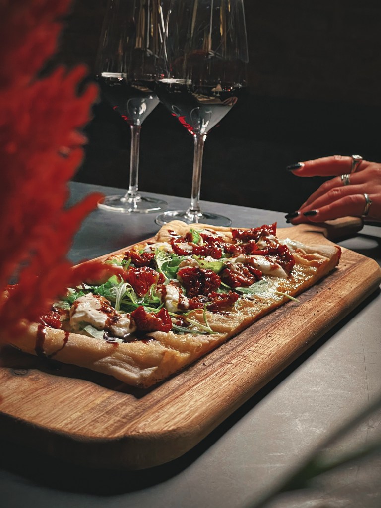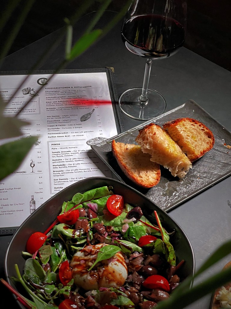 Den Abend haben wir mit frischen Austern und Champagner begonnen und wir haben es uns so richtig gut gehen lassen! Passend zu unserem Wein haben wir uns die Käsevariationen mit grauem Brot und eine Pinsa Romana (eine Art Brot, das nach dem Backen belegt wird) mit Burrata geteilt. Zudem hatten wir noch einen Burrata Salat und natürlich jede Menge guten Wein. Wir können euch die Clermont Weinbar wirklich ans Herz legen.