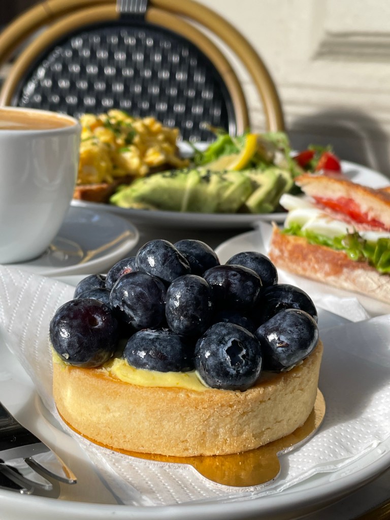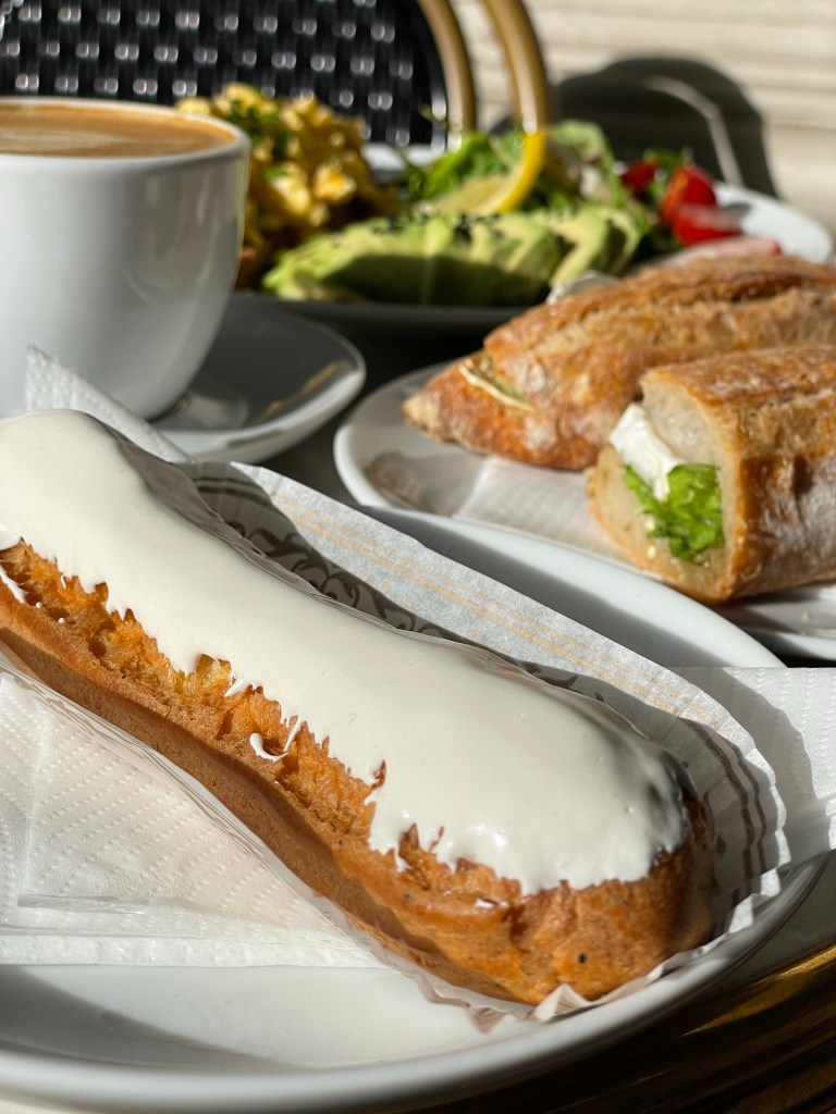 Wir haben uns ein Tuna und ein Ziegenkäse Baguette bestellt und dazu noch ein Blaubeer Tartlet und ein Eclair. Außerdem gab es noch ein sehr schmackhaftes Rühreibrot mit Avocado. Wir können das Frühstück wirklich nur empfehlen! Alles war frisch und sehr lecker.
