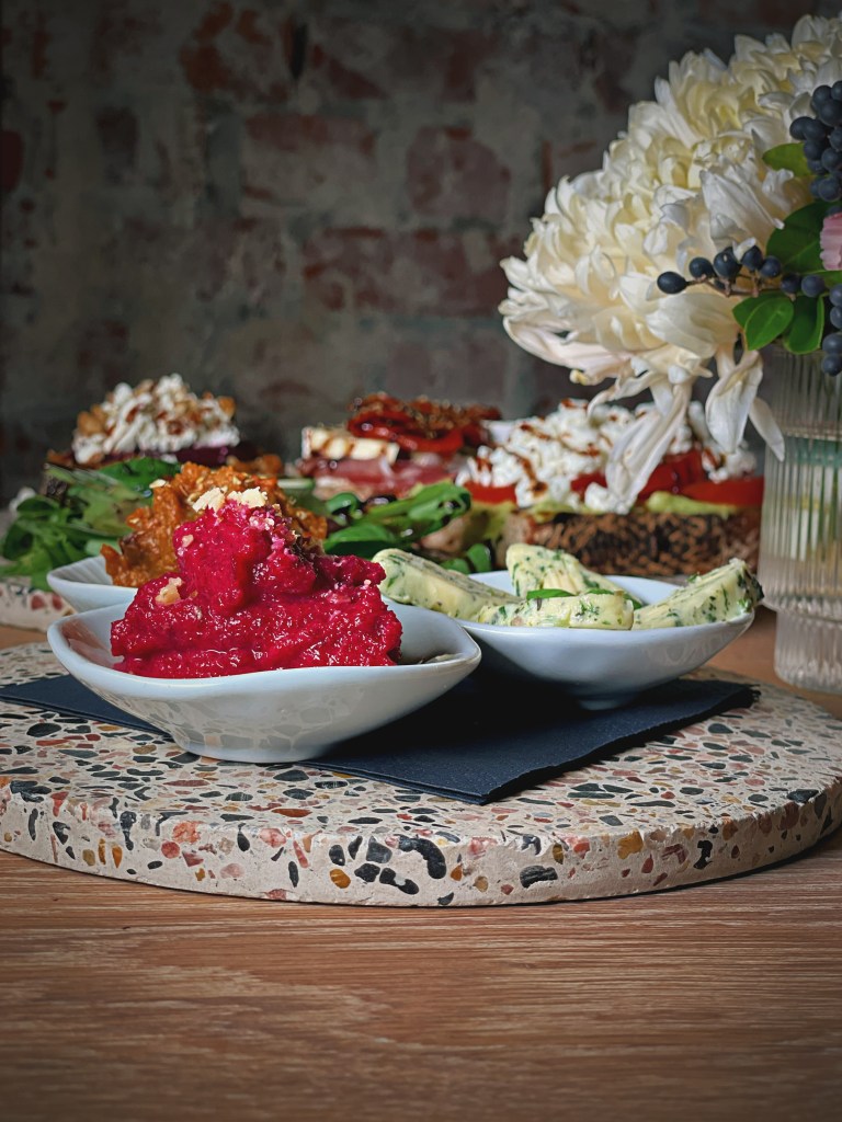 Den Abend haben wir mit zwei ausgesprochen guten Cocktails, dem “san marco mericano“ mit Verney Vermouth, Alpine Bitters, Soda und Lemon und dem „Italian Zenziti“ mit Pfirsich und Ingwer Likör, Verjus, Pink Grapefruit Soda und Rosmarin, begonnen. Im Anschluss haben wir uns quer durch die Karte probiert und die dreierlei Dips, bestehend aus Auberginen-Humus, rote Beete Pesto und Kräuter Butter mit einer Brotauswahl, drei geröstete Sauerteigbrote mit Avocadocreme, Tomate und Feta | Humus, rote Beete, Feta und Walnüssen | mit getrockneten Tomaten, Parmaschinken und Brie und die Aperitivo Platte mit Oliven, Pistazien, Chips, Käse und Aufschnitt, bestellt. Natürlich wollten wir auch den Wein probieren und haben uns einen „côte du thône“ Cuvée von AOC und einen Rosé Cuvée von Flora & Faun empfehlen lassen. Uns hat die Atmosphäre und der Service der Weinbar wirklich sehr gefallen und wir werden mit Sicherheit wieder kommen.