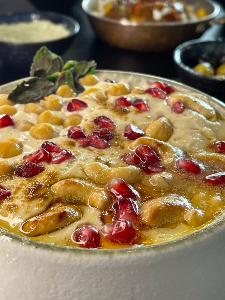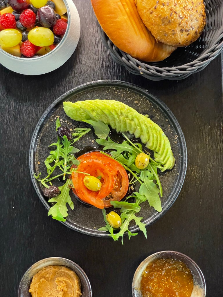 Wir haben uns zum großzügigen Frühstück mit allem, was das Herz begehrt, verabredet. Es gab die „Crunchy Fitteh Bowl“ mit Brotchips, würzigem Joghurt, Kichererbsen, Granatapfel- und Cashewkernen, „Vegan Superstar“ mit Margarine, Marmelade, Avocado, Tomaten, Gurke, Avocadoaufstrich und frischen Früchten der Saison, „Eggy Pop“ mit Tomaten, Gurken, Eiern – gespiegelt oder
