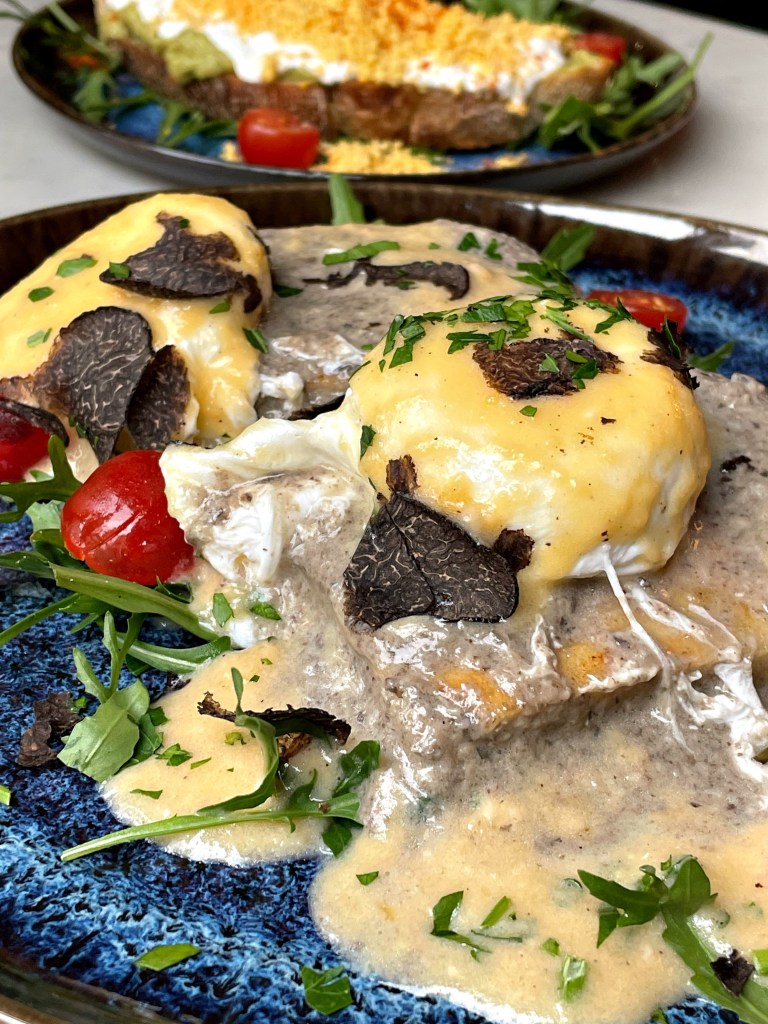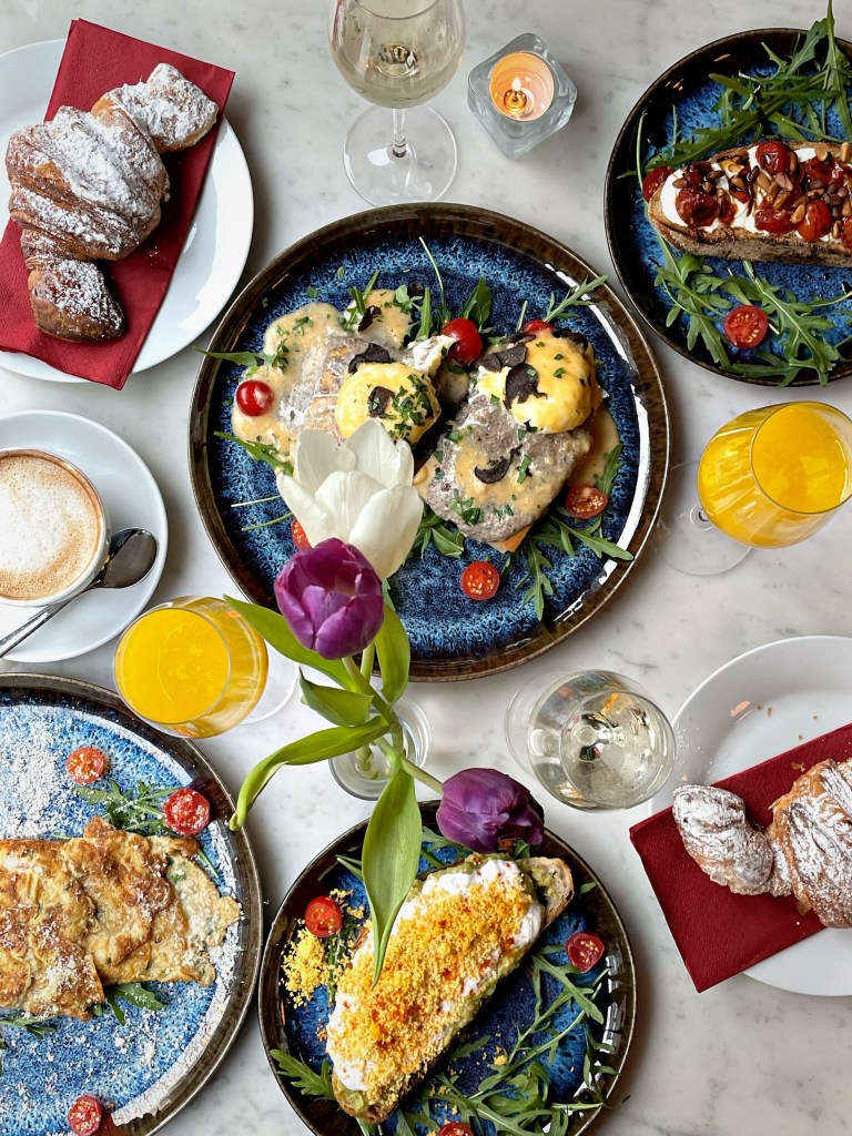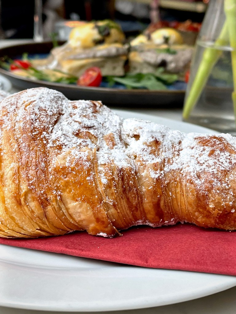 Wir haben uns das große Frühstück für zwei bestellt, welches man selbst zusammenstellen kann. Entschieden haben wir uns für das “FAVOLOSO”, ein Sauerteigbrot mit Avocadocreme, Stracciatella, gebeiztem Eigelb, Chili Honig und Meersalz, das “OMELETTE ITALIANA” aus zwei Eiern mit Kochschinken, Fior Di Latte und Salz, die “TRÜFFEL EGGS BENEDICT” auf Focaccia mit Eiern, Trüffel-Pilz-Creme, Zitronenzeste, frischem Trüffel, Trüffelbutter, Trüffelöl und Salz und “WHIPPED RICOTTA”, einem Sauerteigbrot mit Ricotta Crème, Basilkum Pesto, Datteltomaten, Pinienkernen, Balsamicoessig Crème, Olivenöl, Rucola, Honig und Meersalz. Dazu gab es zwei Gläschen Prosecco, frischen Kaffee und leckere Pistazien Croissants. Das Frühstück ist wirklich sehr zu empfehlen!