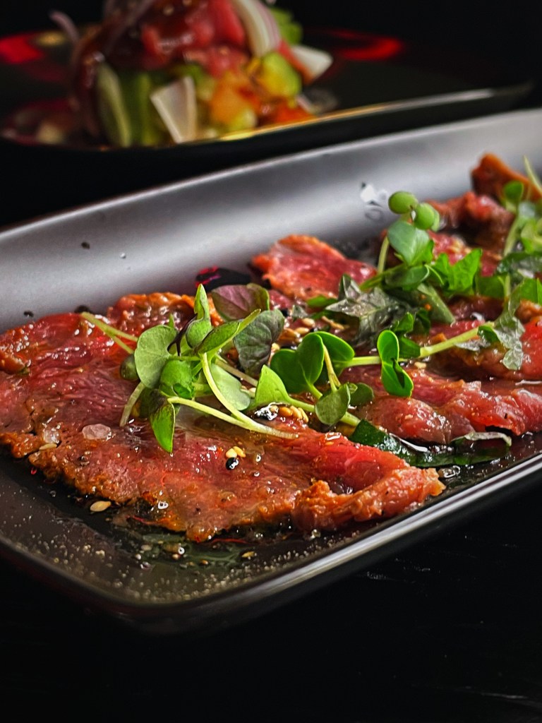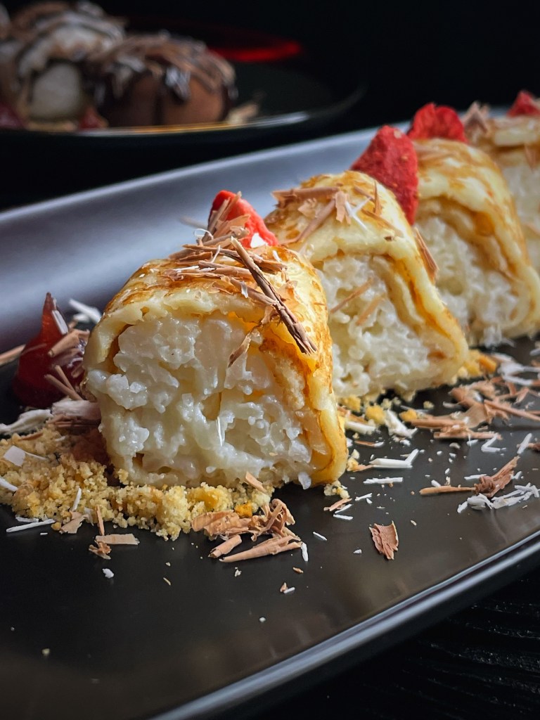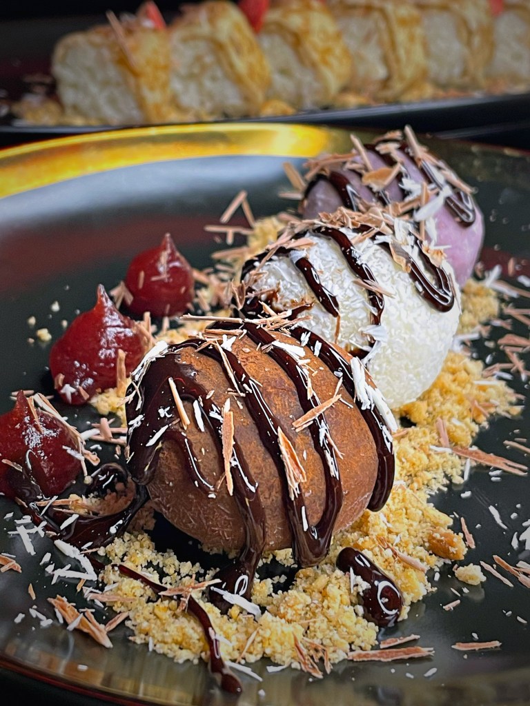 Zunächst haben wir uns würziges Beef Sashimi und den „BEEF MOUNTAIN“ mit Avocado-Guacamole, Asian BBQ Sauce, roten Zwiebeln, Koriander, Sesam und Beef Topping bestellt. Beim Sushi viel unsere Wahl auf die „LACHS FLAMED ROLL“ mit Lachs Topping, Shrimps, Gurke, Avocado, Teriyaki und SENSEI Mayo, die „SEXY CRUNCHY“ mit frittierten Shrimps, Avocado, Gurke und SENSEI Mayo und die „PREMIUM VEGGI ROLL“ mit Paparika, Gurke, Avocado, Spargel und Sensei Teriyaki Sauce. Unser absoluter Favorit war die Lachs Flamed Rolle. Natürlich gab es auch einen süßen Abschluss mit „MOCHI-Eis“ – Mango Passionsfrucht, Creamy Coconut und Belgischer Schokolade und einer „STRAWBERRY DREAM ROLL“ – Pfannkuchen Rolle mit Milchreis, Erdbeersauce und weißen Schoko-Raspeln. Wir empfehlen die Dream Rolle zuerst zu essen, da sie weniger süß ist als das Mochi-Eis.