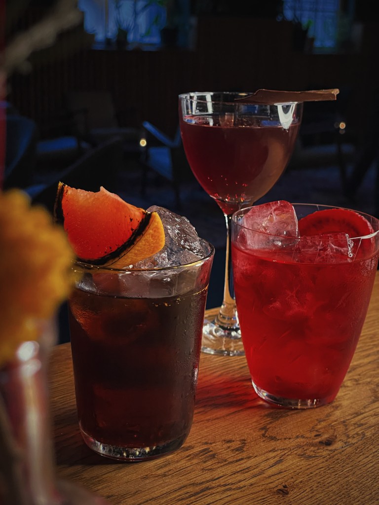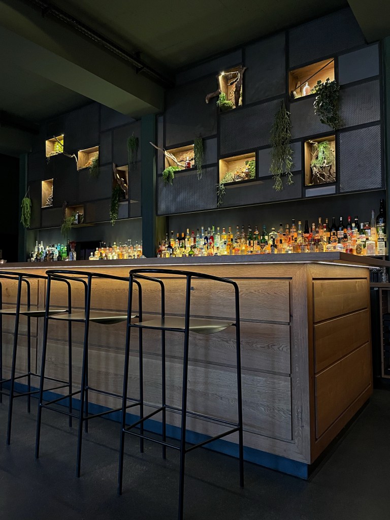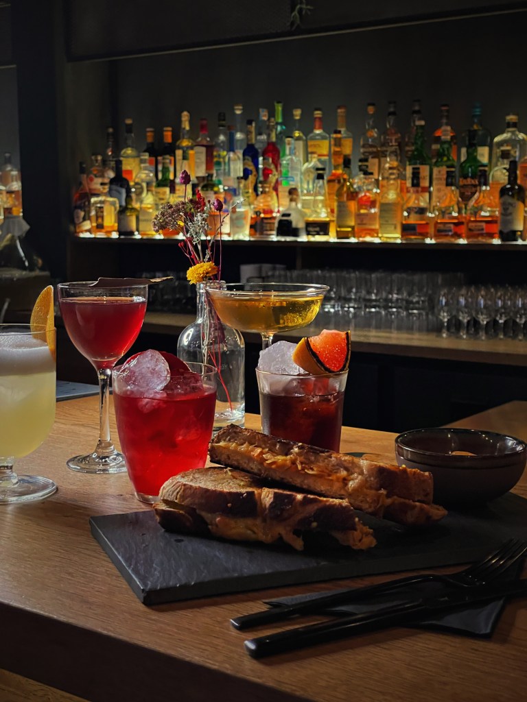 Wir haben uns von Barkeeper Lenz, der vorher in London hinter der Bar stand, beraten lassen und den Abend mit dem “Pear Pressure” mit Wodka, Palu Santo, Birne und Absinth und dem “Not Champagne” mit Szechuan Pfeffer, Vetiver, fortified Wine und Co2 gestartet. Dazu gab es ein knuspriges Grilled Cheese. Weiter ging es mit dem “Drop The Beet” mit rote Beete Geist, Kakao und Bubbles, einem “Coffee Negroni” mit dem hauseigenen clockers Gin, Coffee Liqueur, Campari und Sweet Vermouth und einem “PB&]” mit Dark Rum, Peanut Butter und Himbeere. Zu guter Letzt mussten wir natürlich noch den perfekten “Martini” mit trockenem Wermut, Gin und Olive probieren und als süßen Abschluss gab es noch einen “Amaretto Sour” mit Roggen Whisky, Orange, Amaretto, Eiweiß und Chocolate – einfach perfekt!