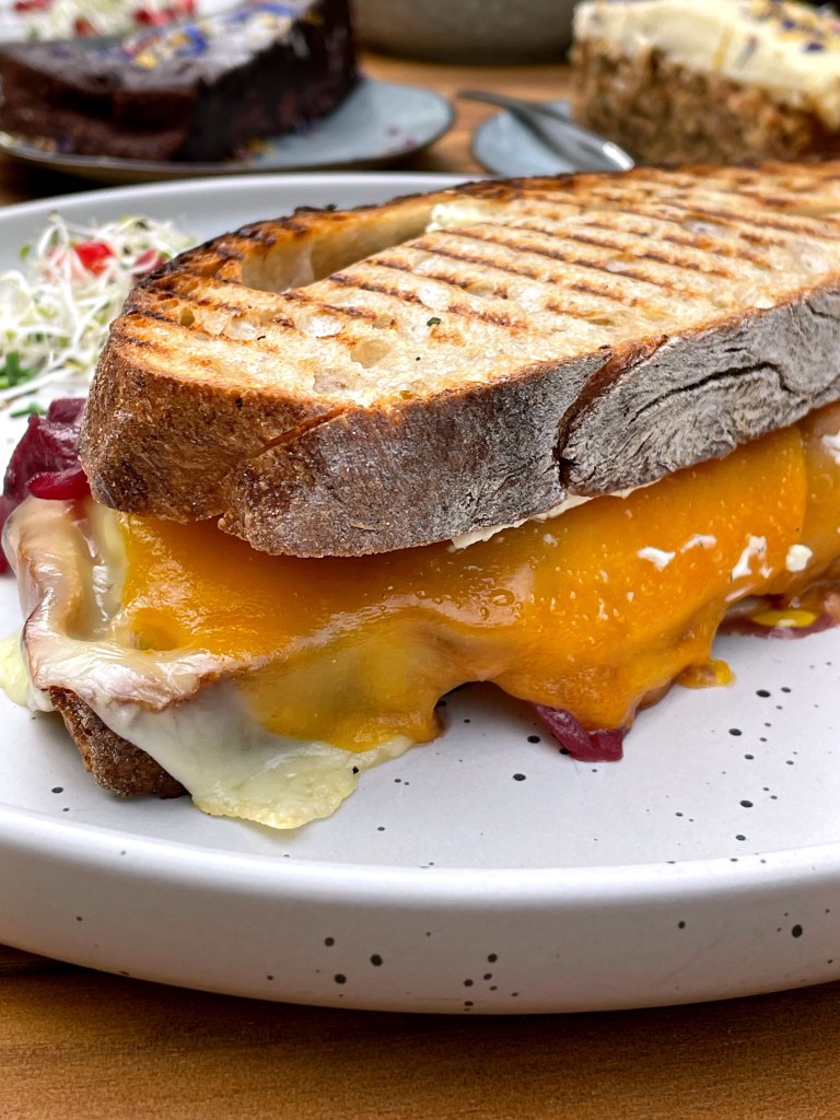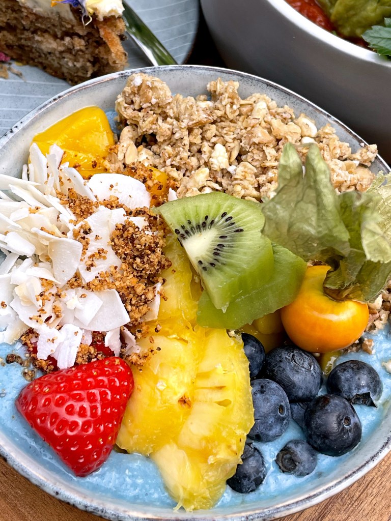 Paledo gehört zu meinen liebsten Frühstücks Spots in Hamburg und so habe ich mich mittlerweile durch die gesamte Karte probiert. Meine absoluten Favoriten sind das Grilled Cheese mit Cheddar, Gouda, Kräutern, Frischkäse und Brombeer Zwiebel-Chutney, die „BLUE OCEAN BOWL“ (kalt, vegan und laktosefrei) mit Feige, Drachenfrucht, Blumenkohl, Banane, Kokosnuss, Mandeln, Cashewnüsse, Limette, blauem Spirulina, Ananassaft, Granola, Mango, Kokoschips, Haselnuss Crunch und Rhabarber, die „BANANA PANCAKES“ (vegan und laktosefrei, auf Wunsch auch glutenfrei) mit frischen Früchten, veganem Vanille Joghurt, und als extra Topping Apfelmus, Erdnussmus, vegane Schokocreme oder Ahornsirup, das „BURRATA-SERRANO-SANDWICH“ mit Burrata, Serrano, Rucola, Frischkäse, rotem Pesto und Balsamico und die „SPRING BOWL“ (vegan) mit Spinat, Drillingen, grünem Spargel, Radieschen, Frühlingslauch, Erdbeeren, Mandelsplittern und Dressing nach Wahl. Ihr bekommt natürlich auch guten Kaffee!