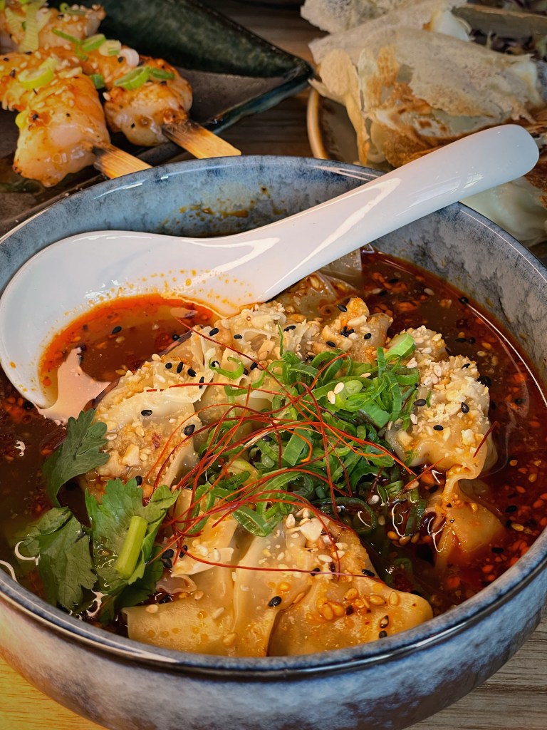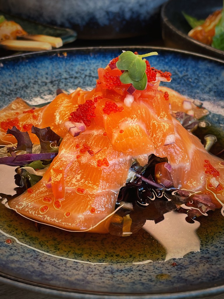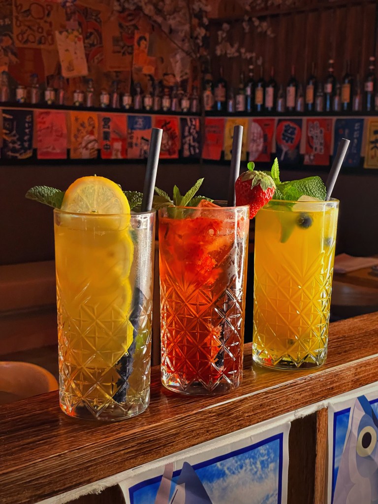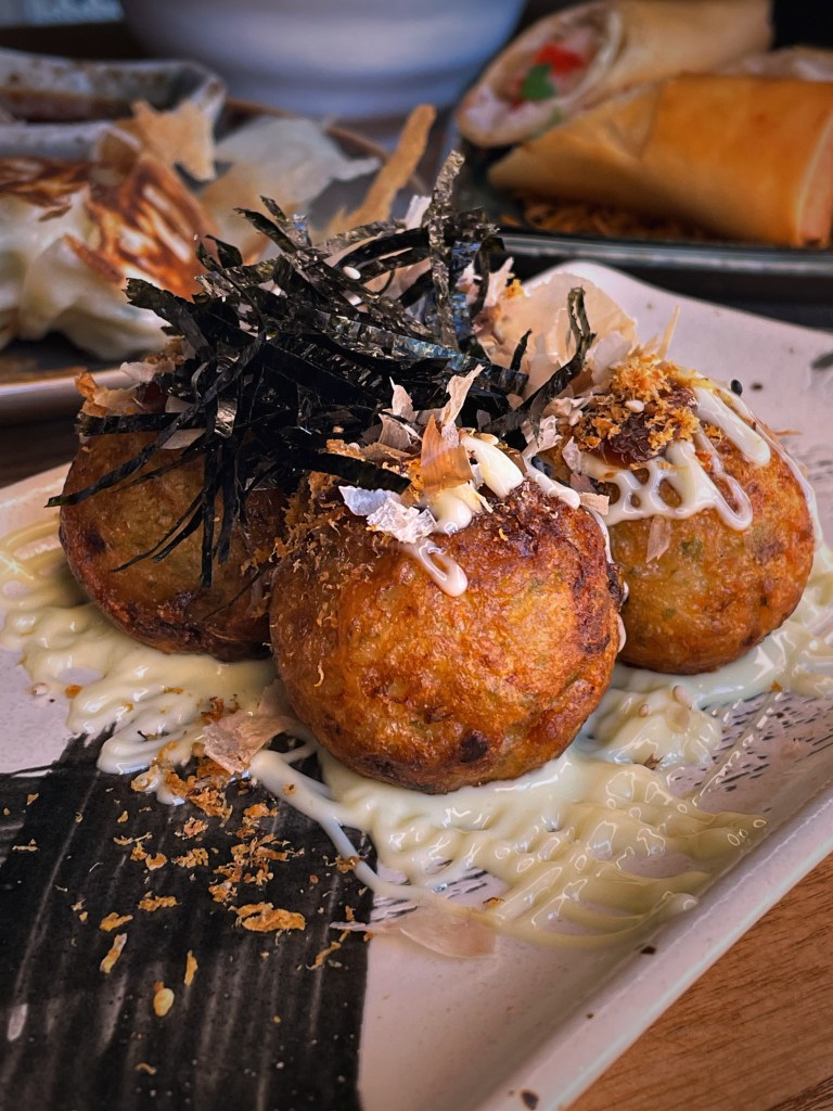Bevor wir uns den köstlichen Speisen hingegeben haben, genossen wir erfrischende Getränke, die perfekt auf die exotische Atmosphäre des Yuzu abgestimmt waren. Probiert unbedingt die frische MARACUJA-MANGO-MINZ LIMO oder das belebende YUZU-LIMETTEN-MINZ-GINGER ALE! Das Yuzu überrascht mit einer Vielfalt an Gerichten, die die Fusionküche in ihrer ganzen Pracht präsentieren. Wir haben mit den KUSHI-YAKI Zucchini-Spießen, einer perfekten Kombination aus zartem Gemüse und würziger Marinade begonnen. Dann kamen wir in den Genuss von den WASABI GAMBAS, knusprig panierte Tempura-Garnelen, die mit verlockender Wasabi-Mayonnaise umhüllt sind und auf einem Bett aus Romana-Salat serviert werden. Auch die GAMBAS SPRING ROLL ist eine wahre Delikatesse – eine gebackene Teigrolle gefüllt mit Garnelen und Bambussprossen, begleitet von einem Süsskartoffelnest und einer verführerischen Yuzu-Pfeffer-Aioli. Auch die TAKOYAKI, leckere Teigbällchen mit Oktopus, die mit Mayonnaise und Okonomiyaki-Sauce getoppt sind und mit Bonitoflocken garniert werden, solltet ihr bestellen! Für Liebhaber von Sashimi gibt es das köstliche LACHS CEVICHE – hauchdünne Scheiben von Lachs, begleitet von einer erfrischenden Tomaten-Salsa, Tobiko, Kresse und Sesam, alles verfeinert mit einem unwiderstehlichen Yuzu-Ponzu-Dressing. Ein weiteres Highlight waren die KUSHI-YAKI Pork Belly Spieße, bei denen zartes Schweinebauchfleisch auf den Punkt gegrillt wird und mit einer köstlichen Marinade veredelt wird. Um die Geschmacksvielfalt voll auszukosten, durften wir uns die Miso Ramen nicht entgehen lassen. Ob mit knusprigem Chicken Karaage oder der veganen Variante Shoyu Ramen mit Tofu – diese herzhafte Suppe mit hausgemachten Nudeln ist ein wahrer Genuss für Gaumen und Seele. Unser süßer Abschluss waren die unwiderstehlichen Mochi Eisbällchen in verschiedenen Geschmacksrichtungen.