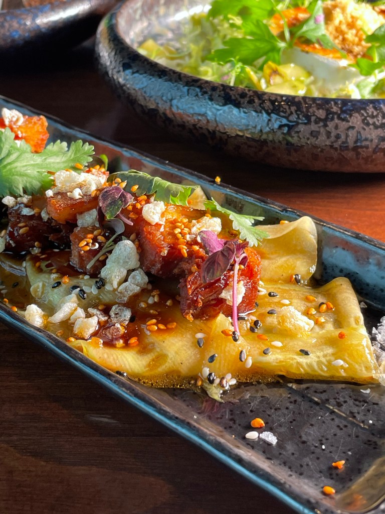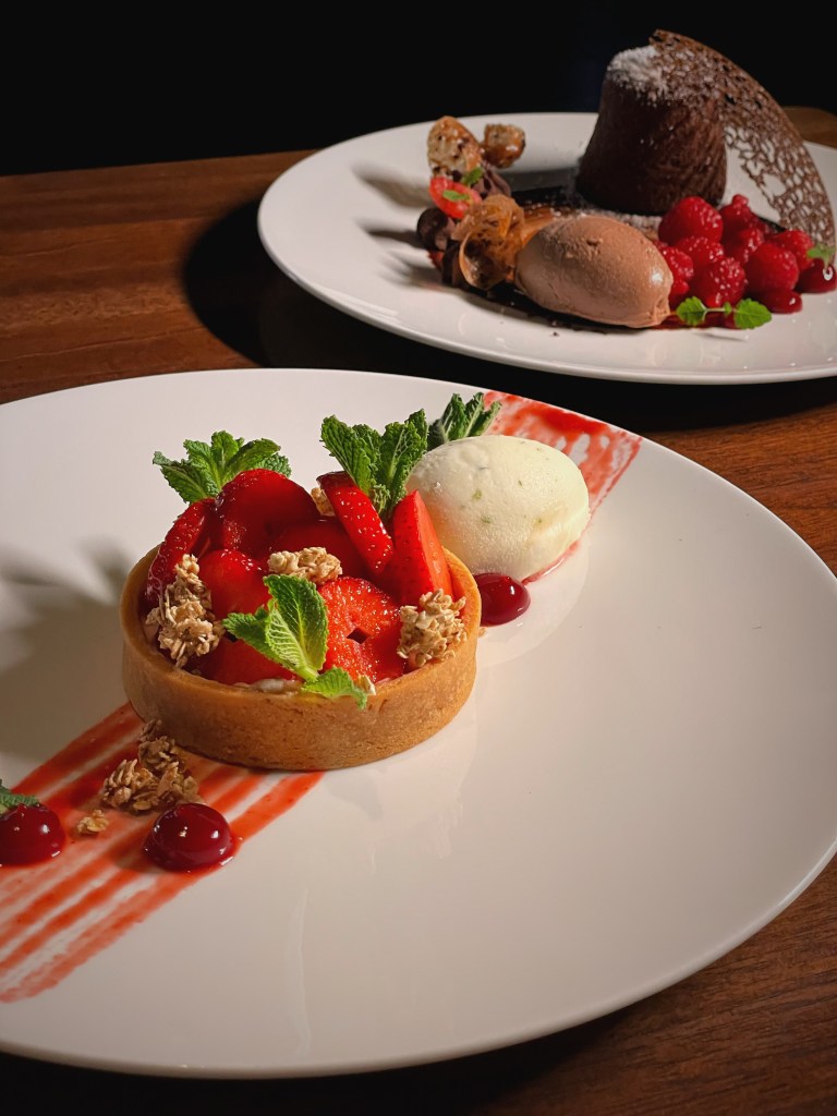 Um euren Abend im HERITAGE Hamburg kulinarisch zu starten, empfehlen wir euch den erfrischenden Erdbeer Spritz. Die Kombination aus Erdbeerpüree, Holunderblütensirup, Zitronensaft, und Sekt verwöhnt euren Gaumen mit einer fruchtig-bitteren Note und sorgt für einen genussvollen Auftakt. Als Vorspeise solltet ihr unbedingt die Brunnenkressesuppe mit Jakobsmuschel und Forellenkaviar wählen. Die feine Kombination der Aromen lässt euch die Frische der Zutaten spüren und verspricht einen köstlichen Start eures kulinarischen Erlebnisses. Für Meeresliebhaber sind die Fines de Claire Austern mit Schalotten-Vinaigrette und Chesterbrot eine exzellente Wahl, um die Vielfalt der Meeresfrüchte zu genießen. Der Krosse Schweinebauch mit Hoisin, Chili-Gurken, Sesam und Koriander vereint zarte Fleischtextur mit einer harmonischen Kombination aus süßen, herzhaften und würzigen Aromen. Wie wäre es mit dem gerösteten Pulpo mit Kichererbsen und Pimientos de Padrón im Hauptgang? Ein weiteres Highlight im Heritage ist zweifellos das Schleswig-Holstein Dry Aged Entrecôte. Hier erwartet euch ein Stück Fleisch, das über vier Wochen lang am Knochen gereift wurde und seinen vollen Geschmack entfalten konnte. Das „Schwarzbunte“ Entrecôte mit einem Gewicht von 300g ist ein wahrer Genuss für Fleischliebhaber. Die Dry Aging-Methode ermöglicht eine natürliche Reifung des Fleisches, bei der es seine zarten Texturen entwickelt und Aromen intensiviert. Das Schleswig-Holstein Dry Aged Entrecôte beeindruckt mit seiner Saftigkeit, Zartheit und einem reichen Geschmack, der durch die lange Reifezeit am Knochen entstanden ist. Für alle Schokoladenliebhaber ist das Dessert „I love Chocolate“ ein absolutes Muss. Der Schokoladenkuchen mit Ganache, Eis und Knusper lässt eure Herzen höherschlagen. Aber auch für diejenigen, die Schokolade nicht mögen, gibt es mit „I hate Chocolate“ eine erfrischende und fruchtige Alternative. Die Kombination aus Erdbeere, Rhabarber, Sauerrahm, Hafer und Limetten-Baiser sorgt für eine harmonische Balance zwischen Süße und Frische.