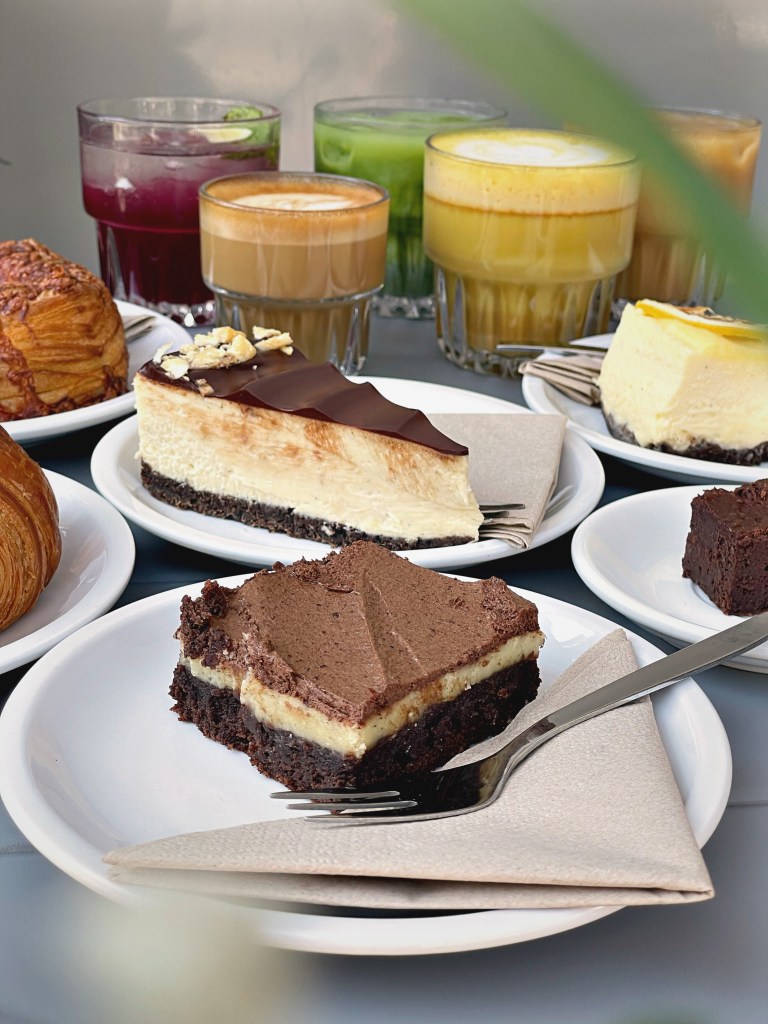 Unser Besuch im Codos Café begann mit einer Auswahl an wunderbaren Getränken. Der Flat White mit Hafermilch sorgte für einen sanften und cremigen Start in den Tag, während die Golden Milk mit Haferdrink eine wärmende und würzige Alternative bot. Für eine erfrischende Option probierten wir die Berry Lemonade, die mit ihrem fruchtigen Geschmack begeisterte. Für die Kaffeeliebhaber unter euch empfehlen wir den Cold Brew, der mit seinem intensiven und erfrischenden Aroma überzeugt. Wer den Matcha-Trend liebt, sollte unbedingt den Matcha Latte on Ice probieren – ein perfekter Genuss für warme Tage. Wir entschieden uns für eine Auswahl an verlockenden Backwaren. Das Pain au Chocolat erwies sich als ein köstlicher Begleiter zum Kaffee, während der Cheesecake Brownie eine himmlische Kombination aus saftigem Brownie und cremigem Cheesecake war. Der Banana Cheesecake überraschte uns mit seinem intensiven Bananengeschmack, während das Mushroom Cheese Danish mit seiner herzhaften Füllung und dem knusprigen Teig ein echtes Highlight war. Natürlich durfte auch der leckere Lemon Cheesecake nicht fehlen, der mit seiner frischen und zitronigen Note begeisterte.