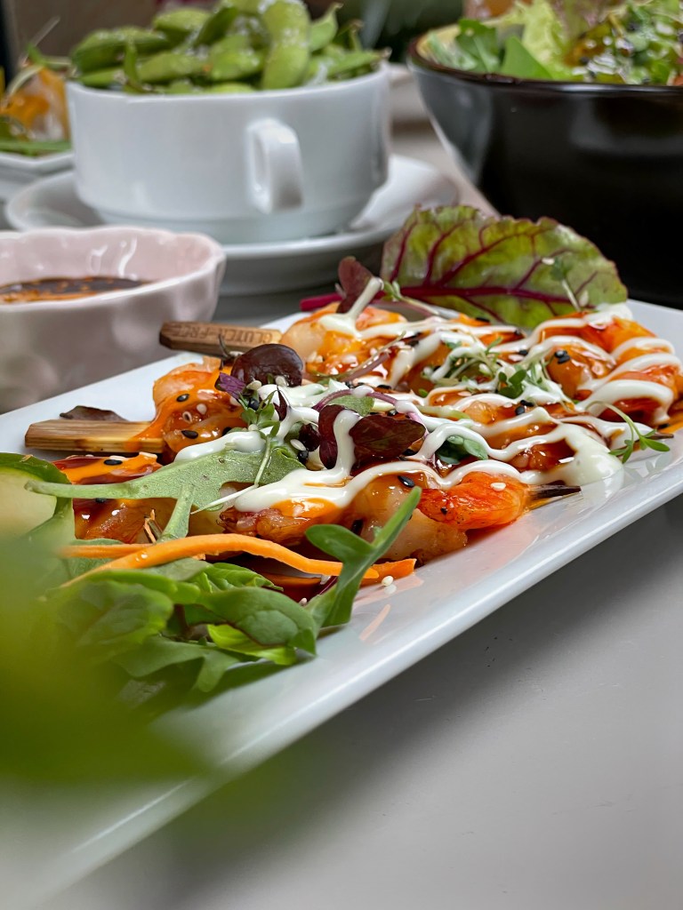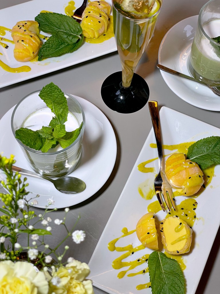 Bei unserem Besuch im Ai Banh Mi wurden wir von einer vielfältigen Auswahl an erfrischenden Getränken begrüßt. Der Tra Dao Cam Sa, ein Pfirsichtee mit Orange und Zitronengras, bot eine harmonische Mischung aus Aromen. Der Lychee en Rose verwöhnte unsere Sinne mit seinem weißen Tee, Rosenblüten, Lychee und Chia-Samen. Als wir den Red Sunrise probierten, wurden wir von der Kombination aus Himbeere, Maracuja und Limette begeistert. Nun zum Highlight – dem Essen. Die HUE BOWL mit gegrillten Lachsfiletwürfeln, Avocado, Reis und Teriyaki-Sauce war ein wahrer Genuss. Wir konnten den frischen Geschmack der Zutaten und die perfekte Balance der Aromen genießen. Das Bo La Lot, zartes Rindfleisch in Betelblättern gewickelt und mit Zitronengras gegrillt, war ein geschmackliches Erlebnis der Extraklasse, ebenso die Tom Xien, gegrillte Garnelen am Spieß mit Avocado in Teriyaki-Sauce. Ein weiteres Highlight war das Bo Kho, ein vietnamesischer Gulasch mit saftigem Rind, Möhren, Kartoffeln und knusprigem Baguette zum Dippen. Das Fleisch war unglaublich zart und die Gewürze verliehen dem Gericht eine wunderbare Geschmackstiefe. Die Ha Cao, gedämpfte Dumplings in einer Hoisin-Chili-Sauce, waren ebenfalls köstlich. Natürlich durften auch die berühmten Banh Mi-Sandwiches nicht fehlen. Das Banh Mi Thap Cam bot eine Kombination aus Xa Xiu-Schweinefleisch (süß-würzig), vietnamesischer Wurst, hausgemachter Leberpastete und frischer Chili. Jeder Bissen war ein Fest für die Sinne. Zum Abschluss verwöhnten uns die Desserts. Das Matcha-Eis mit Kokosmilch und die Mochi-Eis-Sorten mit Mangosauce waren der perfekte Abschluss.