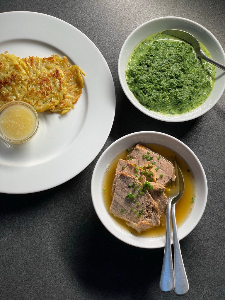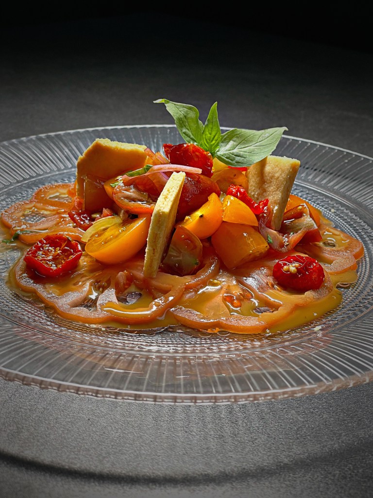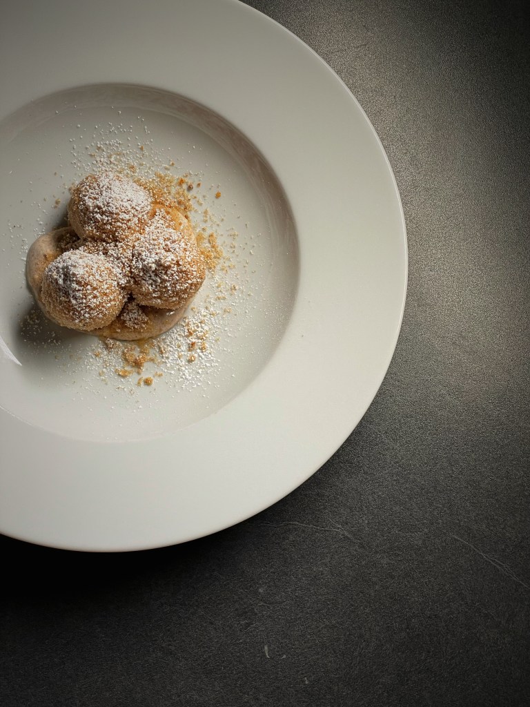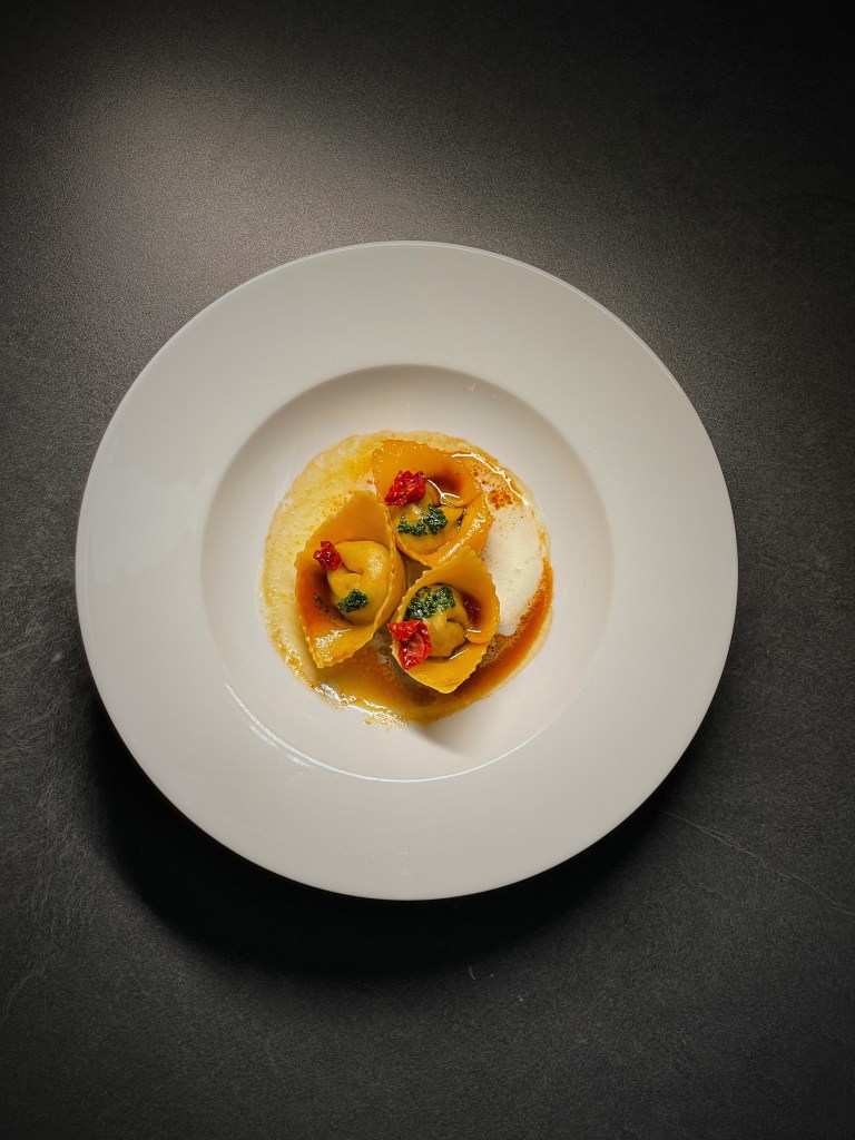 Besonders beeindruckt hat uns die vielfältige und ansprechende Speisenauswahl, begleitet von einer erlesenen Getränkeauswahl, zu der auch ein eigener Rosé gehörte. Wir genossen Kreationen wie den erfrischenden Limone Fresco und den verlockenden Reichlich Spritz. Die Vorspeisen verwöhnten unsere Sinne mit einem Salat aus verschiedenen Tomaten und herrlich angebeizter Forelle. Doch der Höhepunkt waren zweifellos die köstlichen Ossobuco Ravioli – eine Geschmacksexplosion aus Tomate, Bergkäse und Gremolata. Die Hauptgänge boten eine vielfältige Auswahl. Der gekochte Kalbstafelspitz mit Rösti und Apfelkren war solide zubereitet und bot einen angenehmen Geschmack. Der pochierte Saibling mit Letscho und Zitronen-Saiblingsfond war ebenfalls gut, mit einer gelungenen Kombination aus Aromen. Für Gäste, die eine vegane Option bevorzugen, gibt es zum Beispiel die Bohnen-Artischocken-Cassolette mit Polenta und Thymian, die geschmacklich sehr ansprechend und gut abgestimmt war. Das Dessert beendete unser kulinarisches Erlebnis auf die perfekte Weise. Der Affogato mit Granta-Likör und Opalin sowie die Marillen & „Tiroler Edle-Knödel“ mit Butterbrösel, Sauerrahm und Zimt waren wahrhaftig himmlische Kreationen. Für alle, die es lieber salzig mögen, gibt es eine erlesene Auswahl an Käse.