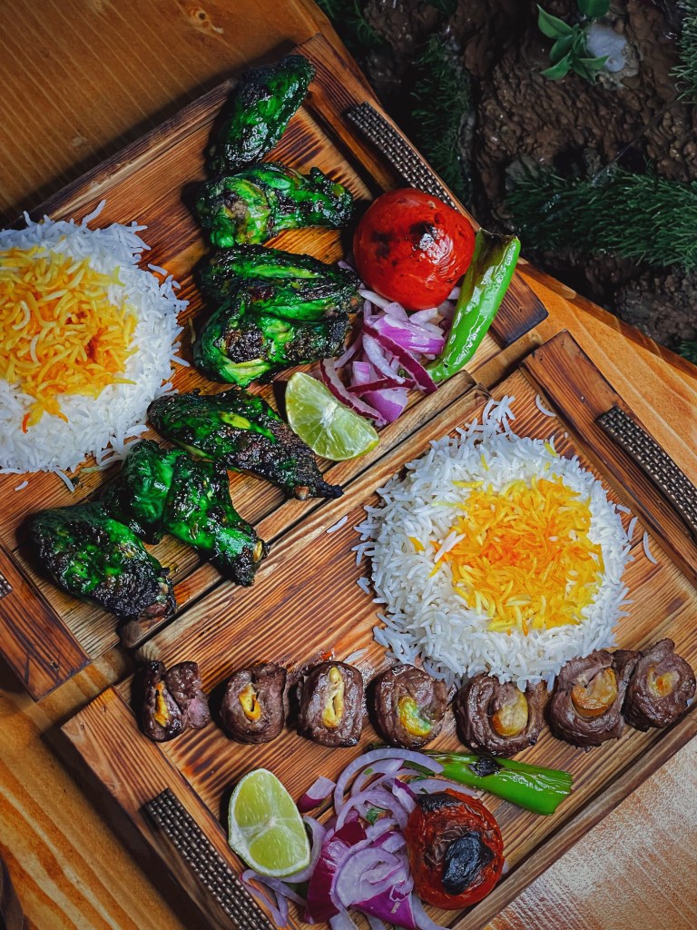 Zunächst probierten wir ein typisches Joghurtgetränk mit einem Hauch von Minze. Die Auswahl an Vorspeisen reichte von verschiedenen Dips wie Chatni bis hin zu Auberginen mit Tomaten und Knoblauchjoghurt. Die Hauptgerichte boten eine Auswahl von Hähnchenschenkeln mit frischem Koriander bis hin zu Hähnchenfilet kunstvoll eingerollt in Kalbsfilet. Die Begleitung von gegrillter Tomate und Basmati Reis vervollständigte die Gerichte. Abschließend genossen wir das Dessert, einen hausgemachten Safranpudding mit Rosenwasser, und beendeten unseren Besuch mit einer Tasse Tee.