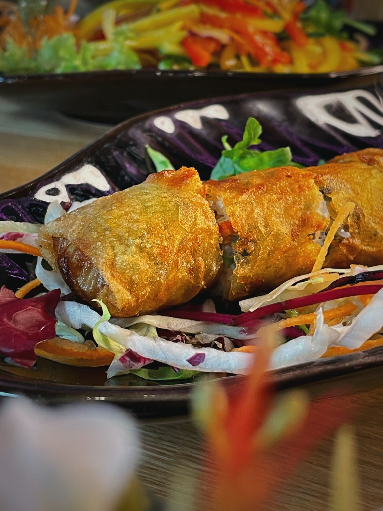 Ein kleines Stück Asien mitten in Wandsbek! Hier findet ihr das vietnamesisch-japanische Restaurant Shifudo, das uns neugierig gemacht hat. Die Einrichtung ist schick, mit Kunstblumen und einer einladenden Bar, und sorgt für eine angenehme Atmosphäre.