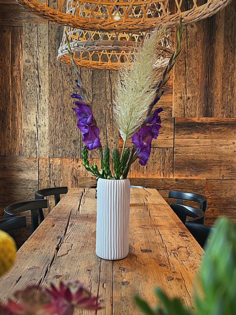 Am malerischen Mühlenkamp gelegen, begeistert Cotidiano mit einem herrlichen Außenbereich direkt am Wasser, der geradezu perfekt ist, um einen sonnigen Blogger-Brunch zu genießen. Doch auch der Innenbereich des Cafés hat einiges zu bieten. Wir hatten das Vergnügen, an einem großzügigen Holztisch Platz zu nehmen, der von üppigen Blumen geschmückt war – ein wahrlich einladender Anblick.