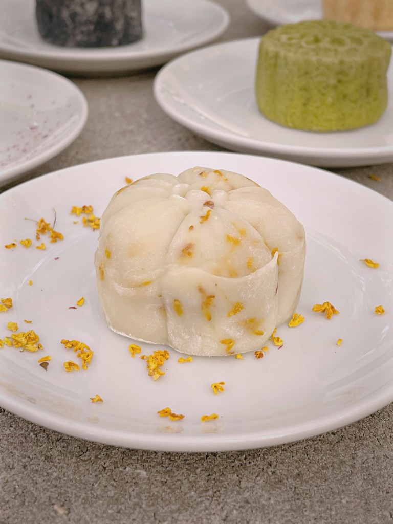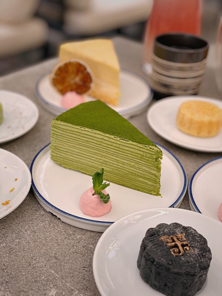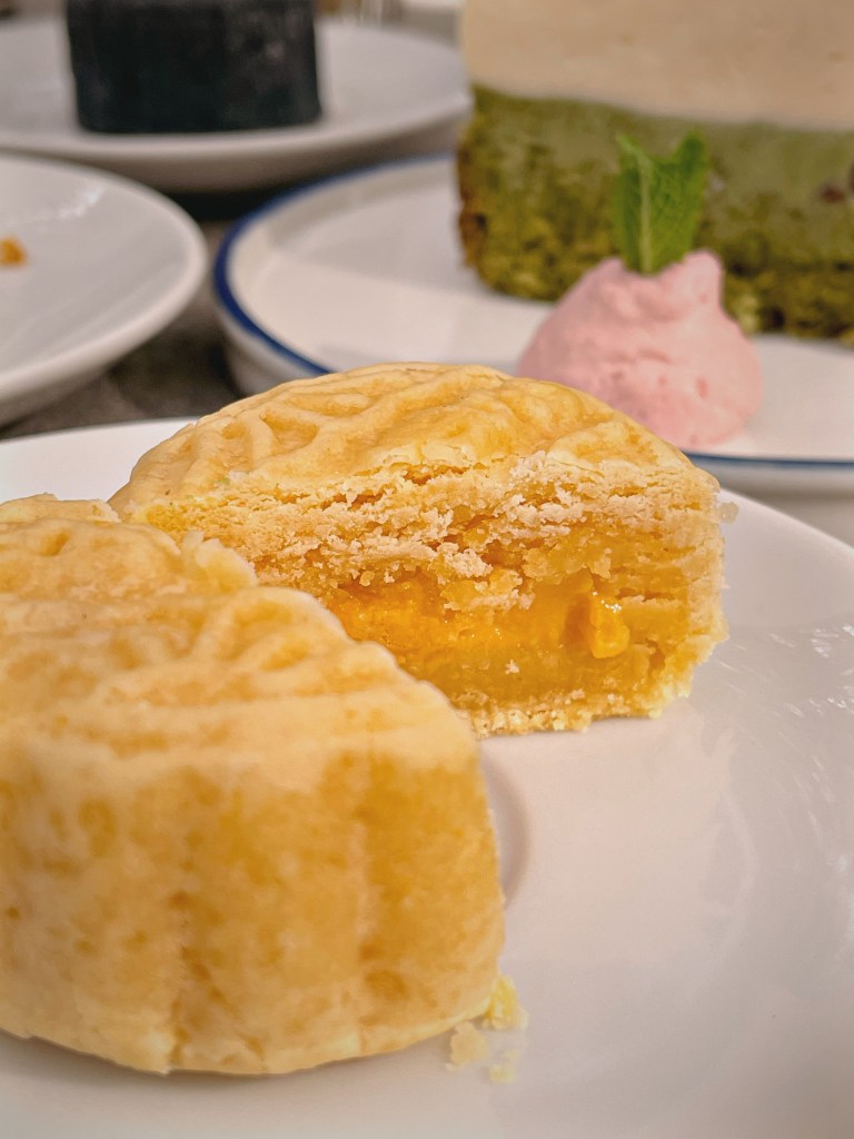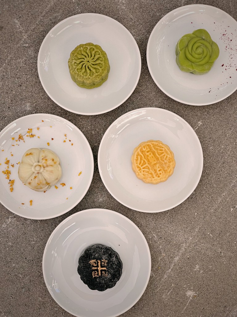 Einer der Stars in diesem süßen Reich sind zweifelsohne die Mooncakes. Doch was sind Mooncakes eigentlich? Nun, Mooncakes sind traditionelle chinesische Gebäcke, die vor allem während des Mondfestes, auch bekannt als Mittherbstfest, verzehrt werden. Sie sind kleine runde Kuchen, die in der Regel eine Füllung aus Bohnenpaste oder anderen süßen Zutaten enthalten. Aber Supersüß geht hier noch einen Schritt weiter. Unsere Geschmacksexpedition begann mit dem ungebackenen „Schnee-Mondkuchen“, der mit Duftblumen und Maronen gefüllt war. Die Konsistenz erinnerte stark an Mochi – zart und geschmeidig. Ein himmlisches Erlebnis! Ein wahrer Höhepunkt war der gebackene „Classic Egg Custard Lava“ Mooncake. Der „Deluxe Pineapple“ Mooncake überraschte uns mit seiner erfrischend fruchtigen Ananasfüllung. Ein wahres Geschmackserlebnis! Neben den Mooncakes bot Supersüß auch eine beeindruckende Auswahl bunter Torten. Die „Matcha Cake“ beispielsweise war eher herb als süß und ein Fest für alle Matcha-Liebhaber. Für diejenigen, die es süßer mögen, gab es verschiedene Variationen des „Double Cheesecake“. Doch das Überraschendste an unserer Verkostung war sicherlich die Stinkfrucht. Im “Orange Double Cheesecake” verarbeitet, sorgte sie für eine eigenwillige Geschmackskreation. Ein ungewöhnliches Erlebnis, das unsere Sinne herausforderte.