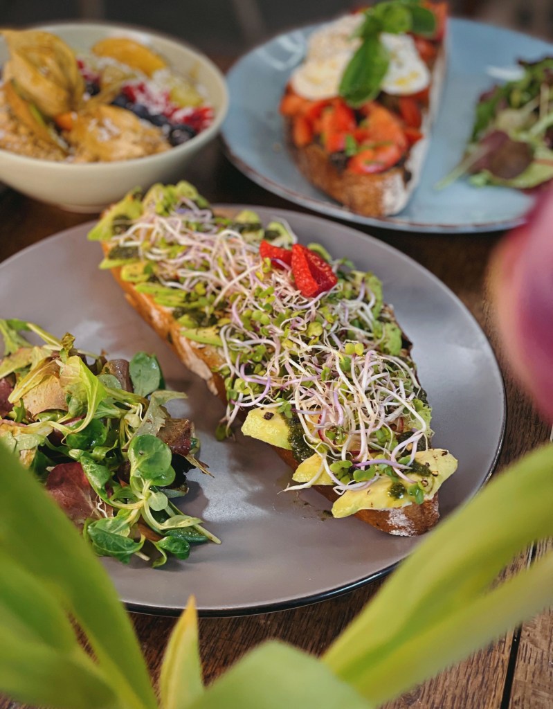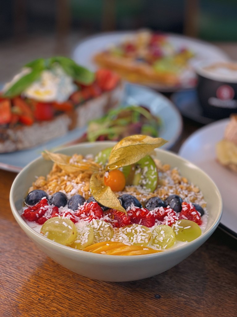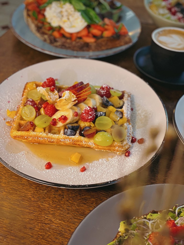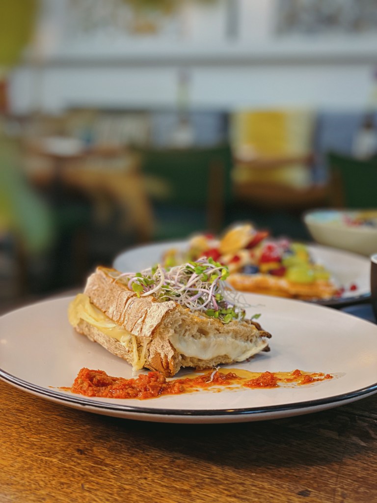 Unsere morgendliche Reise durch die Speisekarte begann mit einer „Avocado Stulle“, die allein beim Lesen das Wasser im Mund zusammenlaufen ließ. Geröstetes Sauerteigbrot, frischer Frischkäse, cremige Avocado, Radieschen, Basilikumpesto und Sprossen verschmolzen zu einem wahren Geschmackserlebnis. Die „Waffel Ahornsirup mit frischen Früchten“ erweckte Erinnerungen an sonnige Wochenendmorgen und wer kann frisch gebackenen Waffeln schon widerstehen? Unser absolutes Highlight war das „Käse Sandwich“. Einfach, aber unschlagbar: Sauerteigbrot, Gouda-Käse und Butter. Manchmal sind es die simplen Freuden, die den Morgen versüßen. Die „Joghurt Bowl“ verführte mit Naturjoghurt, knusprigem Granola-Müsli, frischen Früchten und einem großzügigen Schuss Honig. Zum krönenden Abschluss wagten wir uns an die „Burrata Stulle“. Auf geröstetem Sauerteigbrot fand sich eine verlockende Kombination aus Oliventapenade, marinierten Tomaten, cremiger Burratina und frischem Basilikum.
