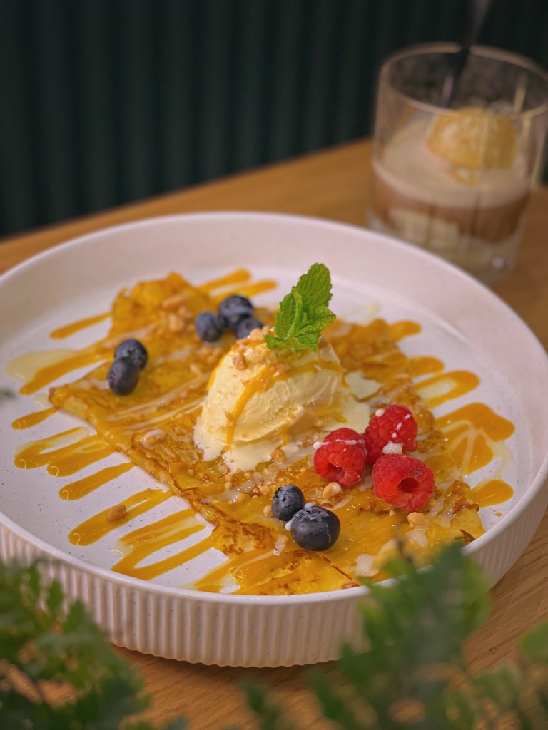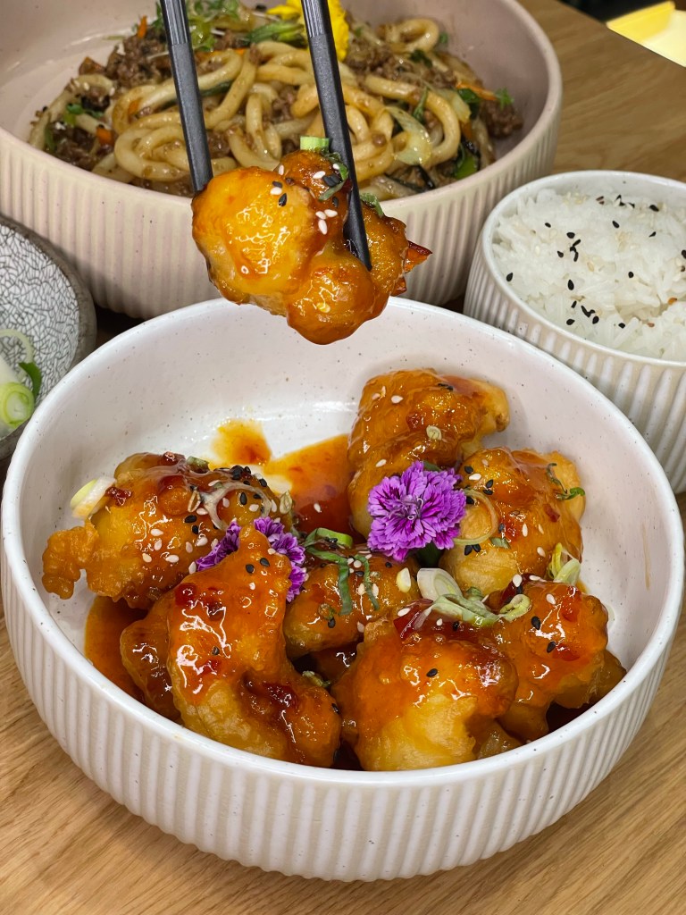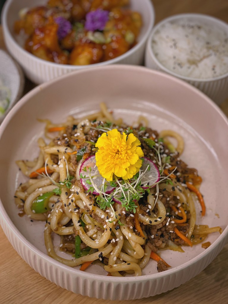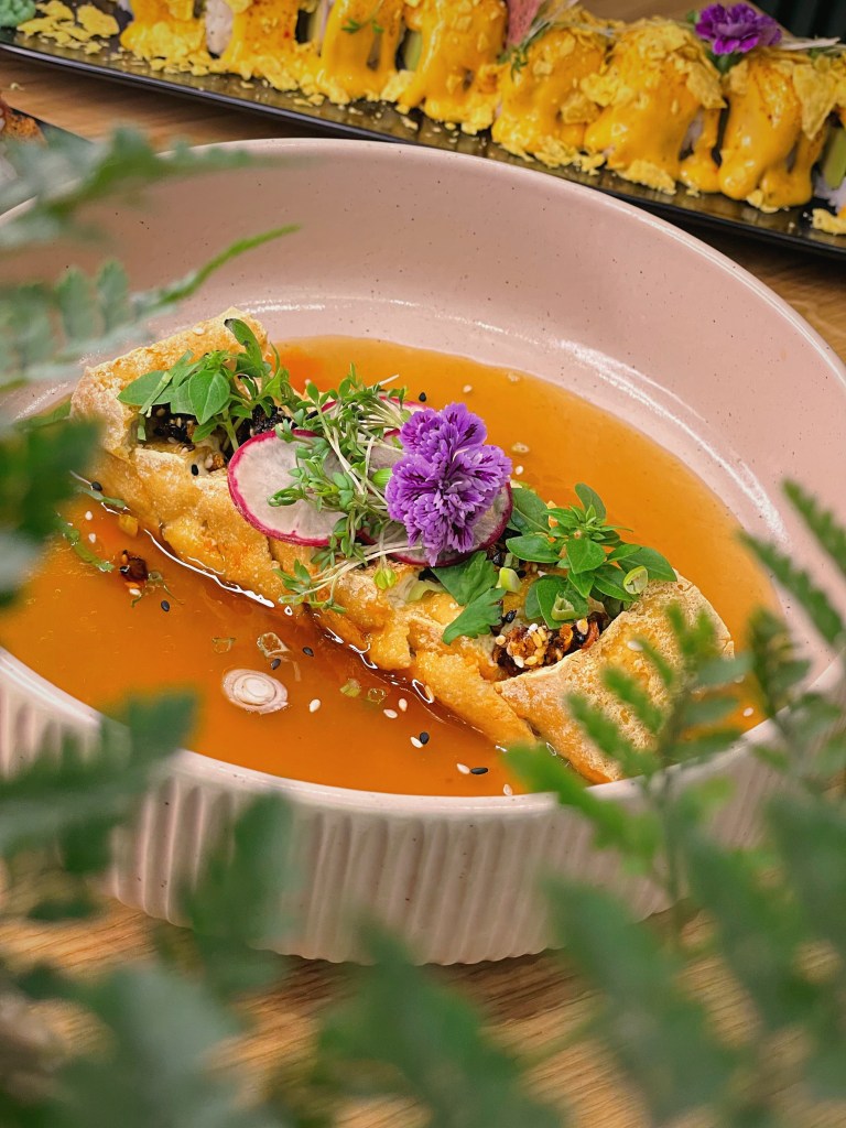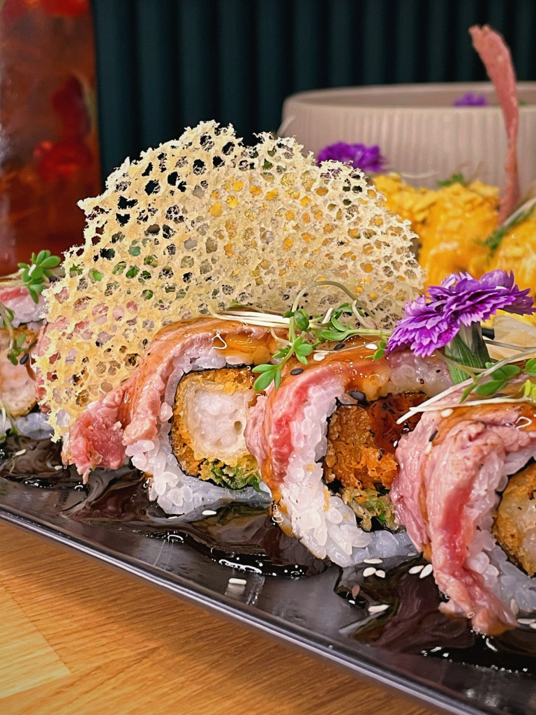 Wir starteten mit erfrischenden Cocktails: Der „Hanoi Mule“ mit Reis-Wodka, Ingwer, Minze, Limette und Soda war ein spritziger Auftakt, ebenso wie der „Flying Raspberry“ mit Gin, Schmetterlingserbsen, Himbeere und Tonic. Ein Höhepunkt des Abends war zweifellos die „Golden Cheese Salmon Rolle“. In dieser Sushi-Rolle trafen Lachs, Avocado, Gurke und flambierter Käse auf knusprigen Nacho-Crunch. Eine Geschmacksexplosion, die in Erinnerung bleibt, auch wenn es eher speziell klingt. Der „Baked Silken Tofu“ überzeugte mit gebackenem Seidentofu in einem pho-Sud und hausgemachtem Chilicrunch. Die Kombination aus zartem Tofu und würziger Sauce war ein wahrer Genuss. Die „Pho Surf & Turf Roll“ begeisterte mit flambiertem Rinderfilet, Tempura Garnelen, eingelegten Karotten, knusprigem Koriander-Crunch und einer prickelnden Sriracha-Sauce. Auch die „Cauliflower Pops“ sollten nicht unerwähnt bleiben: Gebackene Blumenkohlspitzen mit Gochujang-Sauce und eingelegtem Rettich, ein veganer Leckerbissen mit angenehmer Schärfe. Für Fans von klassischer Pasta in unkonventioneller Zubereitung bietet YuYu eine „Udon Bolognese“ an, die mit saftigem Rinderhackfleisch und vietnamesischen Gewürzen überrascht, mit der italienischen Bolognese allerdings wenig zu tun hat. Die Dessertauswahl war ebenfalls eine Freude. Die „Mango Crepe“ begeisterte mit einer zarten Crêpe, Mangosud und knusprigen Nüssen, serviert mit köstlicher Eiscreme. Das „Vietnamese Affogato“ verwöhnte uns mit Trung Nguyen Espresso, Kondensmilch und cremiger Eiscreme. Neben den genannten Köstlichkeiten bietet YuYu auch eine einzigartige Trüffelpasta in asiatischem Stil. Dieses außergewöhnliche Restaurantkonzept verspricht eine kulinarische Reise für all jene, die offen für neue Geschmackserlebnisse sind.