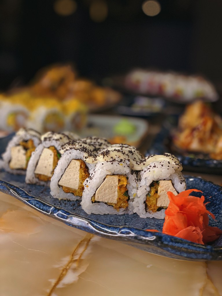 Wir starteten unseren Abend mit erfrischenden Cocktails, ein Margarita mit Mango und 1800 Tequila versetzte uns direkt in Urlaubsstimmung, während der Lillet Spritz mit Lillet Blanc, Prosecco und Minze eine perfekte Balance aus Frische und Aromen bot. Unsere Bestellung begann mit köstlichen Dumplings, gefüllt mit Garnelen und begleitet von einer verlockenden Teriyaki-Soße und Sesam. Die Sushi-Kreationen im Zen Haus sind wahre Kunstwerke, die man teils von Rohhäppchen kennt. Die „Rumpelstilzchen“ Rolle mit Lachs Tartar, Trüffel Mayo, Olivenstaub und Rucola entführte uns in eine Welt von Harmonie und Genuss. Ebenso begeisterte uns die Kreation „Frau Holle“ mit Nobashi Ebi, Avocado, Kabayaki Mayo und Curry Pankow. Die Auswahl erweiterte sich mit dem Chicken Tori Karaage, serviert mit Wasabi Mayo und Schnittlauch. Ein perfekter Snack, der die perfekte Balance zwischen knuspriger Textur und würziger Note bot. Und dann das Sushi-Highlight: „Das Märchen vom Schlaraffenland“ mit Thunfisch, Avocado, Miso und Trüffel. Zum krönenden Abschluss probierten wir die Kraken Mule mit Kraken Rum, Lemonaid Ingwer, frischer Limette und Zeste. Als erfrischende Begleitung wählten wir eine hausgemachte Yuzu Limonade, bei der sogar ein extra Shot möglich war.