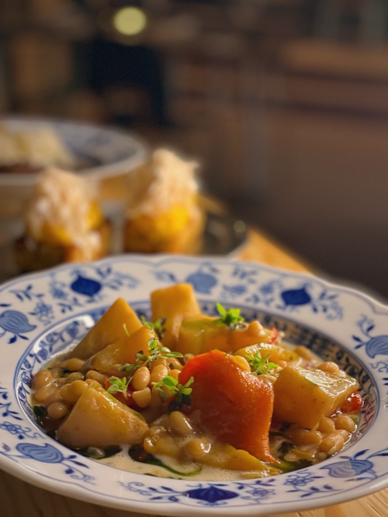 In der Viva Cantina der Villa Viva erwartete uns eine kulinarische Symphonie. Erfrischende Rhabarber- und Cranberry-Schorlen leiteten das Fest ein. Die Auswahl der kleinen Teller begeisterte mit Coppa, Kichererbsenkroketten, frittiertem Rosenkohl, Oliven und Arancini. Der nächste Gang überzeugte mit meisterhafter Komposition wie Sellerie „Barigoule“, Semmelknödel mit Mangold, Belper Knolle, und Portobello mit Kaffeesud und Trüffel. Ein Tiramisu bildete den süßen Abschluss.