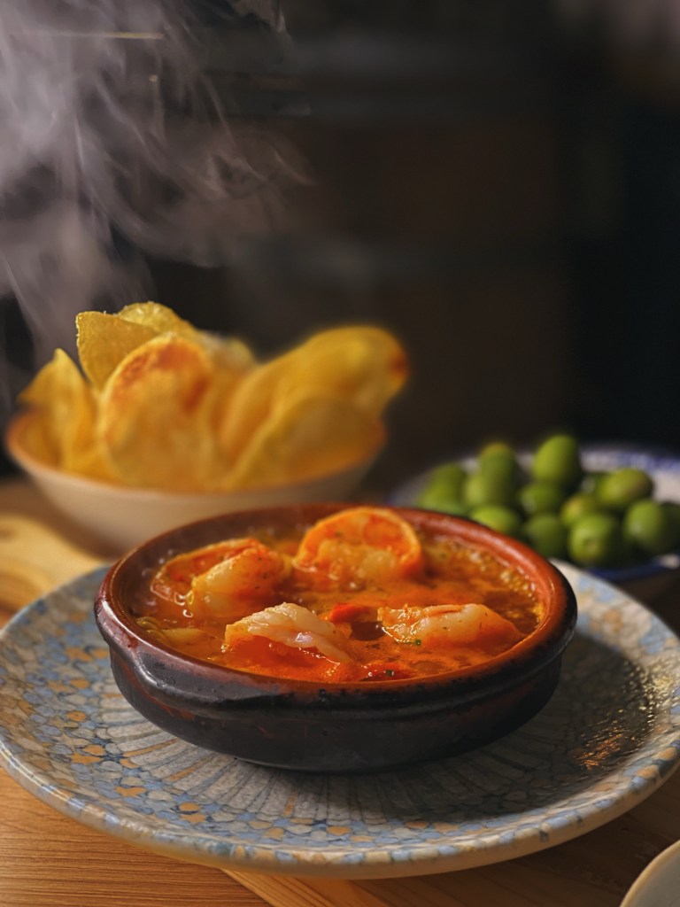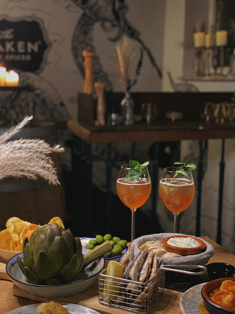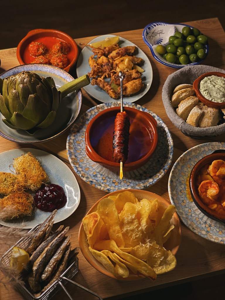 Unser kulinarisches Abenteuer begann mit einem erfrischenden Eilbek Supreme, gefolgt von köstlichem Brot und Aioli. Mit jedem weiteren Gang wurden wir tiefer in die Welt der Tapas entführt. Von eingelegten Sardinen bis hin zu Gambas in Knoblauch, von knusprigen Kartoffelscheiben mit Trüffelöl und Parmesan bis zu einem mit Engelshaar gebackenen Feta mit Preiselbeerkompott – jedes Gericht war eine Offenbarung. Besonders beeindruckte uns die ganzen Artischocke mit hausgemachter Chimichurri-Dip sowie die feurige, gegrillte Paprikawurst. Und das Dessert im Glas mit Mandarine rundete unser kulinarisches Erlebnis perfekt ab.